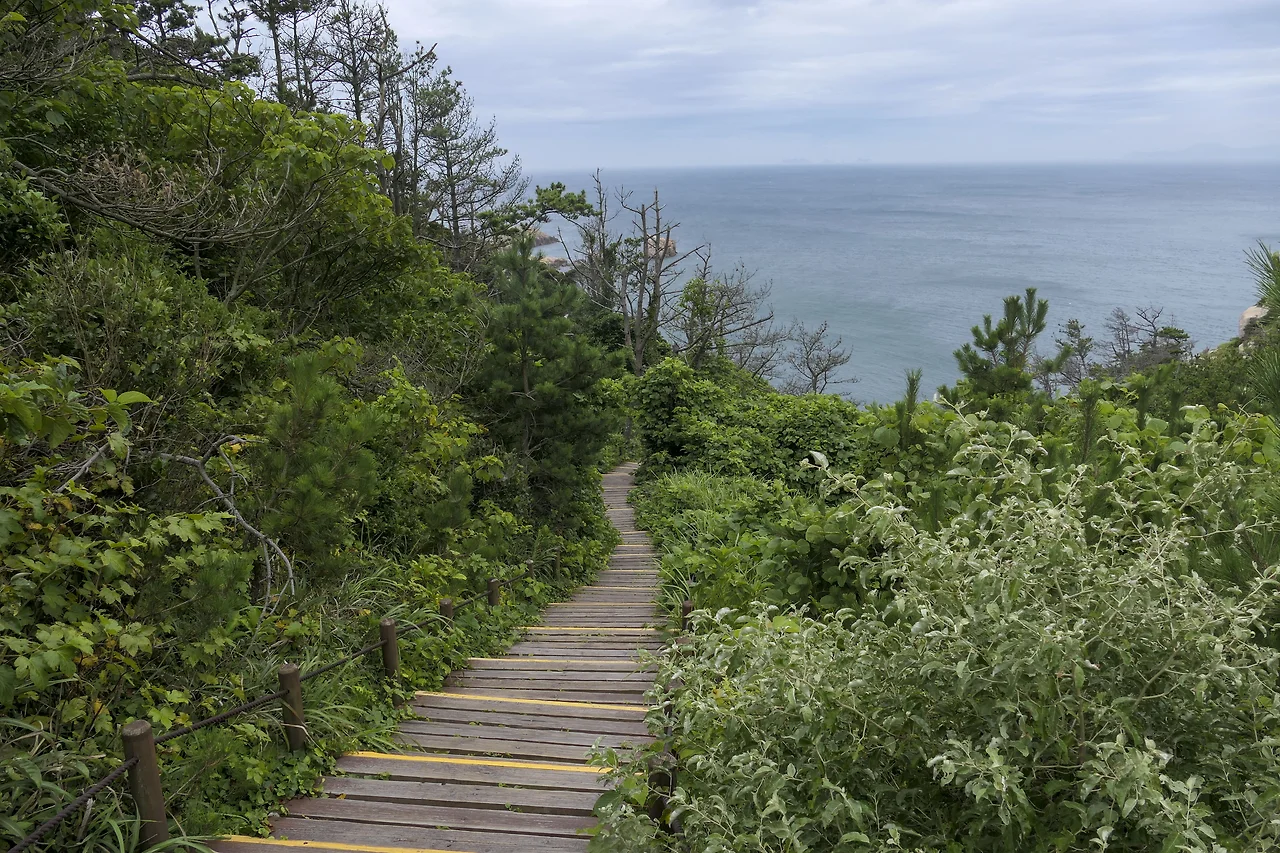 전망대까지 그 가파른 길을 어떻게 올랐는지 모른다. 옆으로 둘러가는 길이 있음에도 지름길을 택했다. 턱까지 차오르는 가쁜 숨을 몰아 쉬면서도 내내 기억 속에 아름답게 새겨진 등대섬을 볼 기대감으로 쉬지 않고 내쳐 걸었다. 하긴 마지막 배가 뜨지 않을지도 모른다는 경고(?) 때문에 빨리 다녀와야겠다는 마음도 있었다.