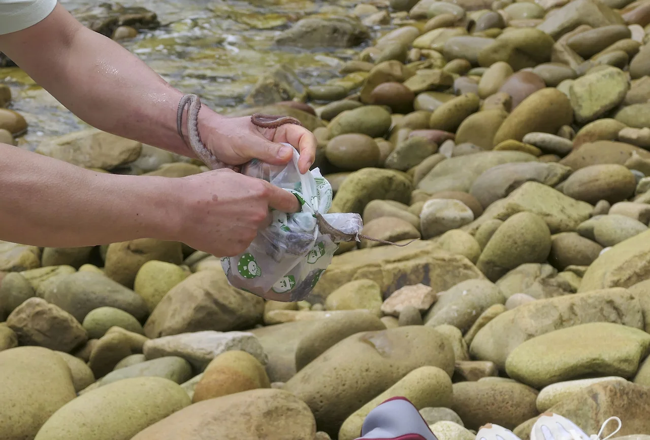 허기와 뱃시간 때문에 아쉬운 발길을 돌리려 할 때 환호성이 들려 돌아보니 눈먼 낙지가 발버둥을 치고 있었다. 몽돌 앞에 물 멍하던 사람들에게 어떻게 잡힌 것인지...