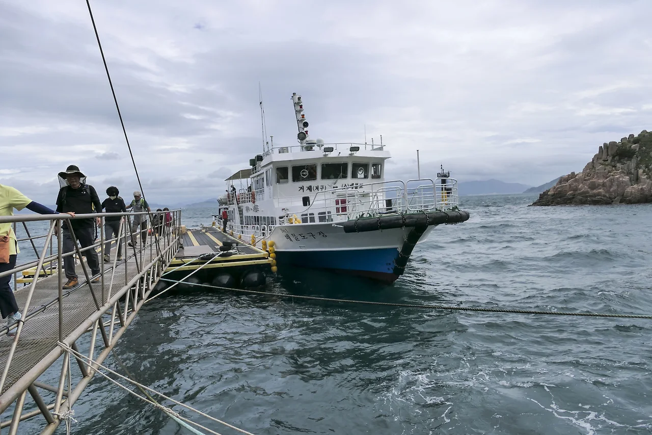 잠이 살짝 들었을까? 웅성거리는 소리에 눈을 떠보니 어느새 매물도 당금 선착장이다. 걷는 내내 너른 바다 보며 동백꽃 길을 걷던 바다 둘레길(해품길)이 눈에 선하다.