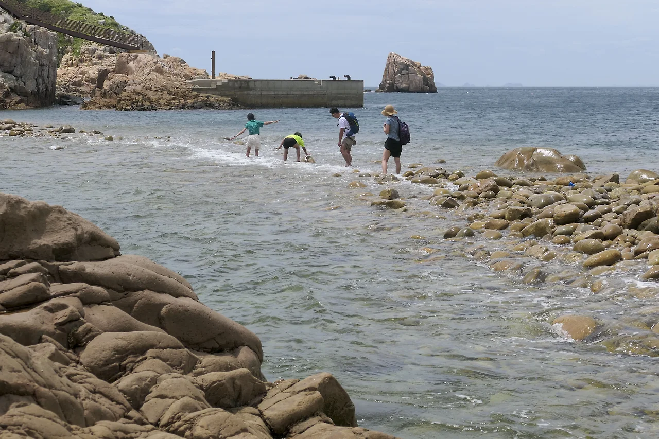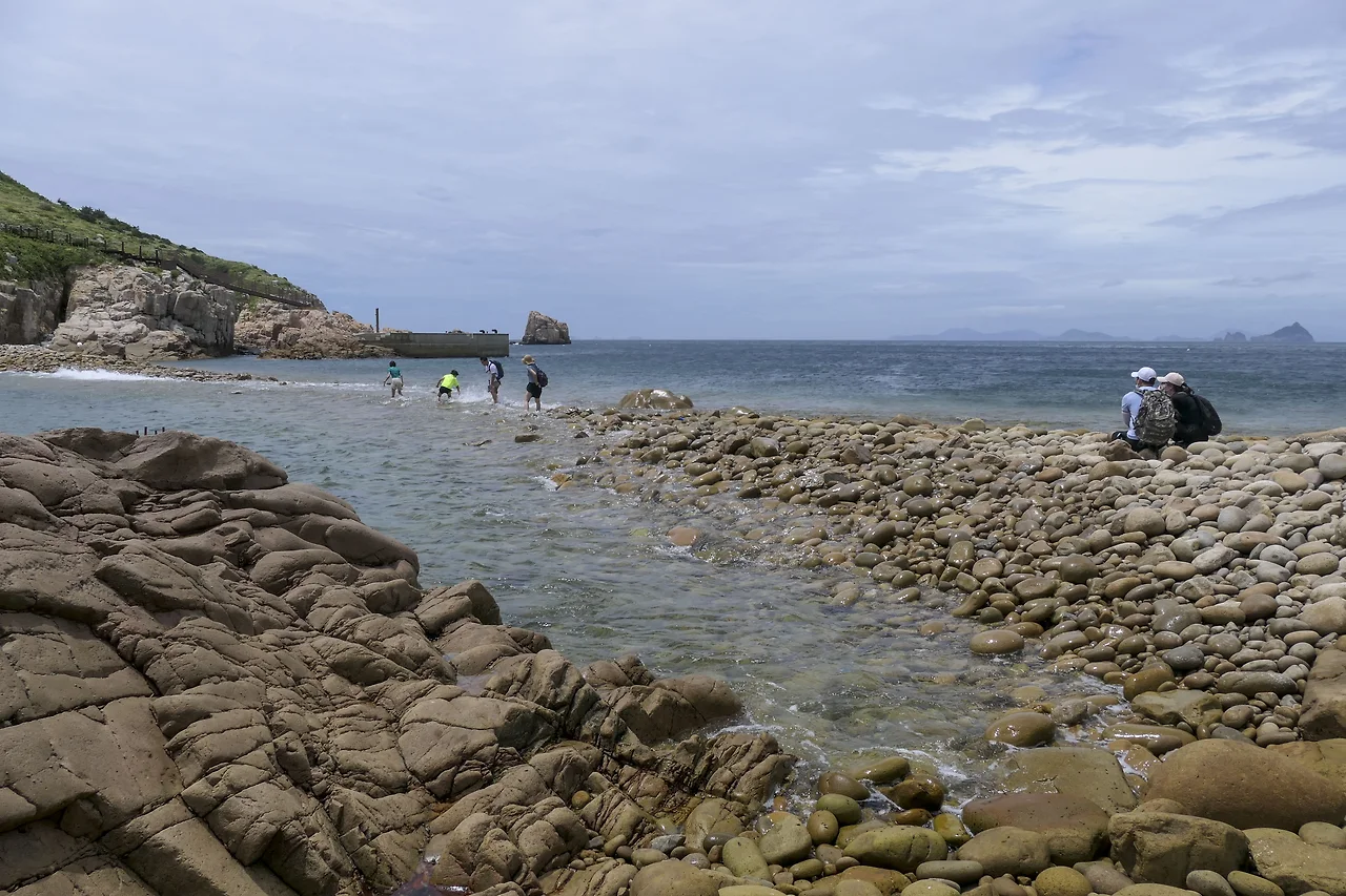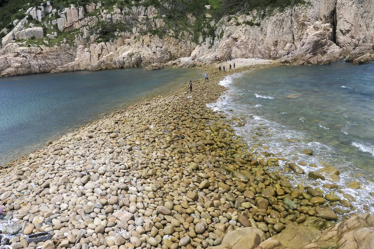 열목개의 바닥이 모래였다면 바지를 걷어 올려서라도 절벅절벅 건너갔겠지만 바닷물이 빠지지 않은 둥글둥글한 자갈밭은 엄청나게 미끄러웠다. 용감한 가족이 처음 뛰우뚱뛰우뚱 건너가자 슬며시 용기를 낸 다음 관광객이 건너가고 마침내 우리도 물이 다 빠지기 전에 신발을 벗고 도전했다. 바닷물은 발목에도 차지 않았지만 문제는 미끄러운 돌길을 맨발로 건너가는 것이 쉽지 않았다. 조심조심 건넜지만 발 여기저기가 벌겋게 흠집이 나 버렸다.