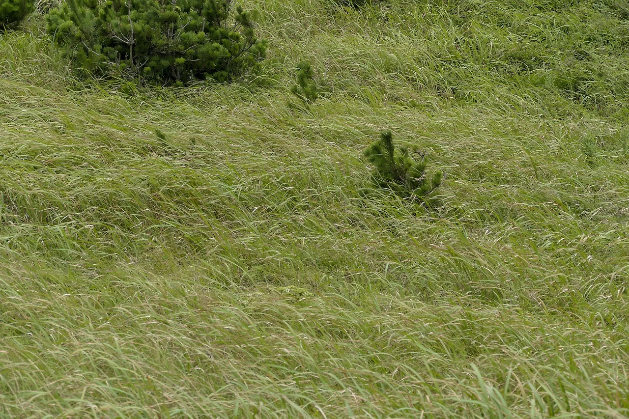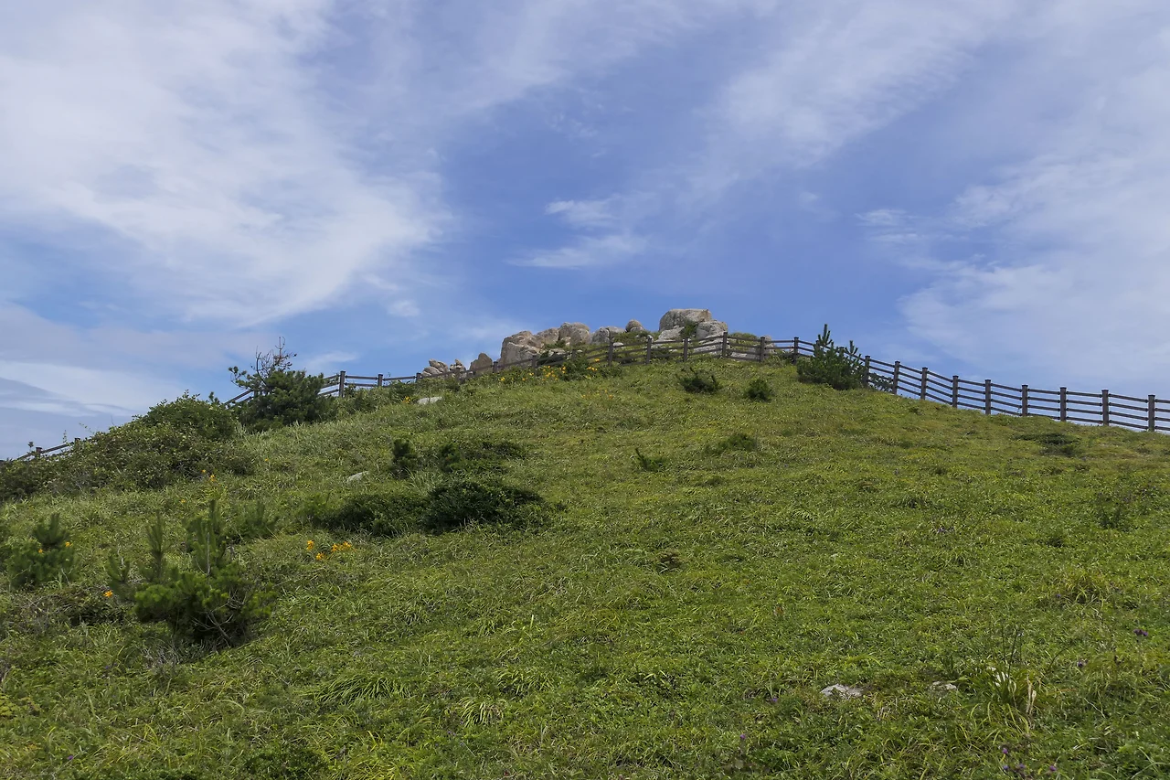 탐방객들의 무분별한 출입으로 훼손되었던 소매물도 가기 바로 전의 언덕은 지금은 복원이 되어 초지가 되었다. 섬을 횡단하며 숲 속 길을 걸어오면서 뜨거운 햇볕도 바람도 느끼지 못하고, 바다 풍경도 제대로 보지 못했는데 이곳에 와서야 제대로 거센 바람과 강한 햇볕을 느낄 수 있었다. 그런데 다행히도 선착장에서 보았던 먹구름은 어느 정도 걷히고 있었다.