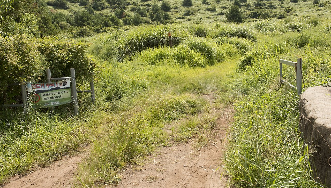 아무런 표지판도 없고 풀이 무성한 입구에서 헤매고 있을 때 10여 명의 등산객들이 몰려왔다. 사막에 물 만난 듯 우리는 그들의 뒤를 따랐으나 전문 등산가인 듯 따라가기가 쉽지 않다. 잡풀로 우거진 오름 길 간간이 보이는 이름 모를 꽃이 반갑다. 주위를 맴도는 나비는 카메라를 들이대도 날아갈 생각을 안 한다.