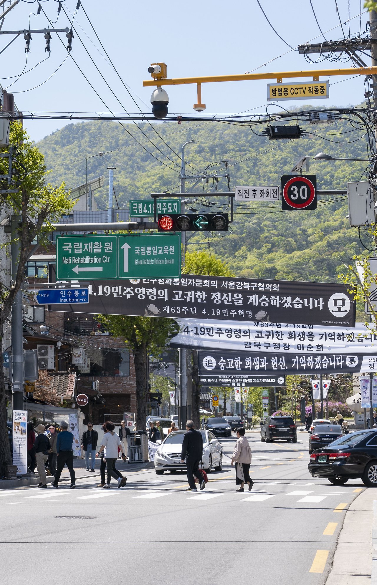 4월 19일이라 근처 4.19 민주묘역을 찾았다. 우이신설선을 타고 4.19 민주묘지역에 내리니 흰색과 검은색의 플래카드가 많이 걸려 있다. 또 기념행사를 치렀는지 부산하기 짝이 없다.