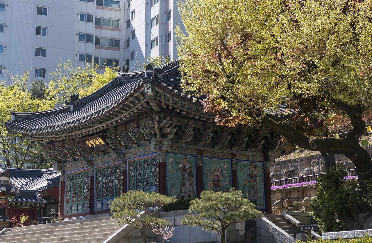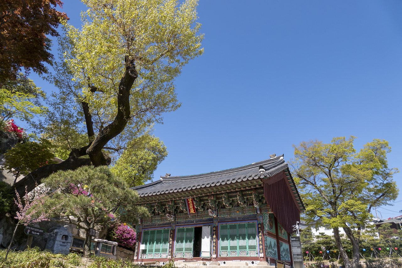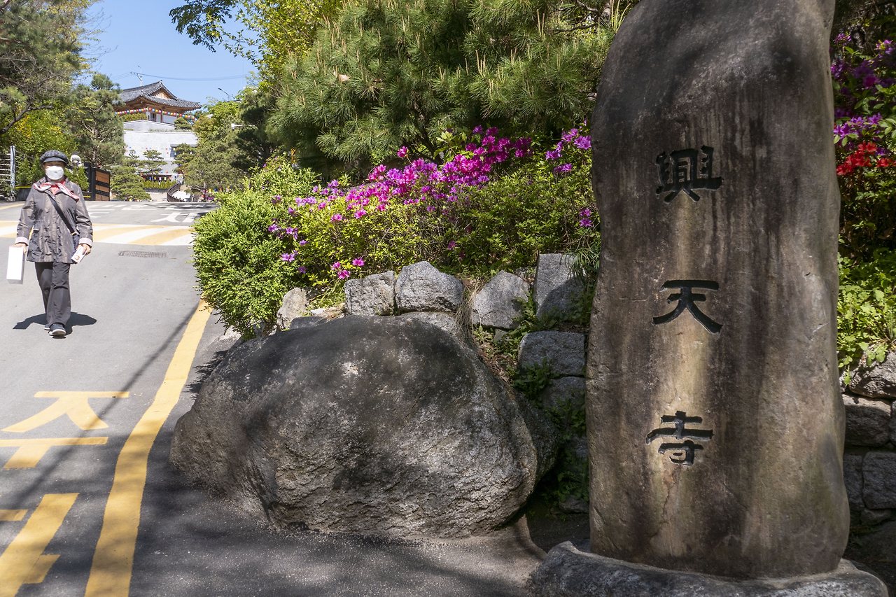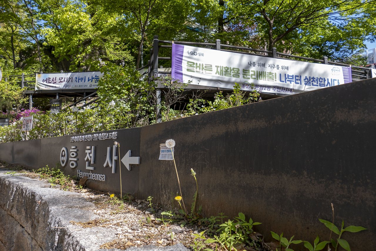 지하철 성신여대역 4번 출구를 나와 숨이 살짝 차오를 때까지 언덕을 오르다 보면 돈암2동 주민센터가 보이고 바로 위에 흥천사가 있다. 흥천사는 조선을 개국한 태조 이성계의 계비인 신정왕후의 능인 정릉의 능침사찰이다. 절은 다가오는 부처님 오신 날을 맞이하여 걸어 둔 오색 연등과 봄꽃으로 화려하다.