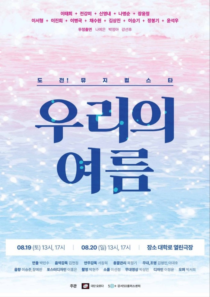 연기에 대한 열정이 나를 여기까지 끌고 왔다. 지난해 겨우 연기에 대한 맛을 느끼고 꽃을 피워보려 했으나 서울시장이 바뀌고 정책이 바뀜에 따라 50 플러스 센터는 취창업 관련 과목만을 남기고는 문화활동에 대한 모든 과목이 폐지되고 말았다. 망연자실해 있을 때 지인이 강서센터에서 뮤지컬 과목이 개설되었다고 알려주었다. 묻고 따질 틈이 없었다. 바로 신청을 했고 부푼 마음으로 개강일을 기다렸다.
