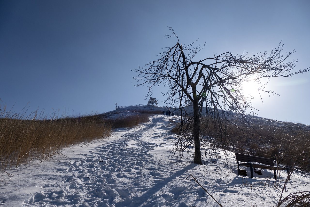 추운 겨울, 나 같은 등린이에게는 이런 코스가 딱이다. 어느새 오후로 접어들고 있는데 몇 명의 등산객과 캠핑객이 급경사 길로 올라오고 있다. 잠깐 멈춰도 추운데 그들의 등에는 많은 짐이 들려 있다. 아마도 하룻밤을 보내고 가려나 보다. 내가 저 나이 때라면 한 번쯤 시도를 해 봤을까?