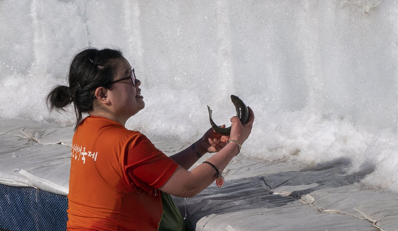 그중 눈길을 끄는 곳이 산천어 맨손잡기장이다. 한 겨울에 빨간 반팔 상하의를 입은 관광객들은 그저 물고기를 맨손으로 잡겠다는 일념하에 가볍게 몸을 푼 후 바로 얼음물속으로 뛰어들었다. 맨손 잡기의 즐거움에 빠져있는 그들도 그들을 바라보는 우리도 박수를 치며 즐거워했다.