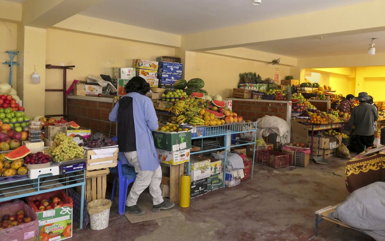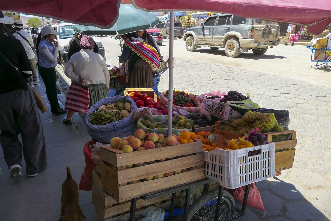 우유니 마을의 과일 시장에 들렀다. 소박하고 생기 넘치는 시장에서 팔고 있는 신선한 과일을 보고 욕심을 내다보니 한 보따리나 사고 말았다. 칠레 국경을 넘어가려면 농산물 반입이 되지 않는데 말이다. 식사 후 배가 부른 데 사온 과일까지 먹어치우느라 정말 곤욕을 치렀다.