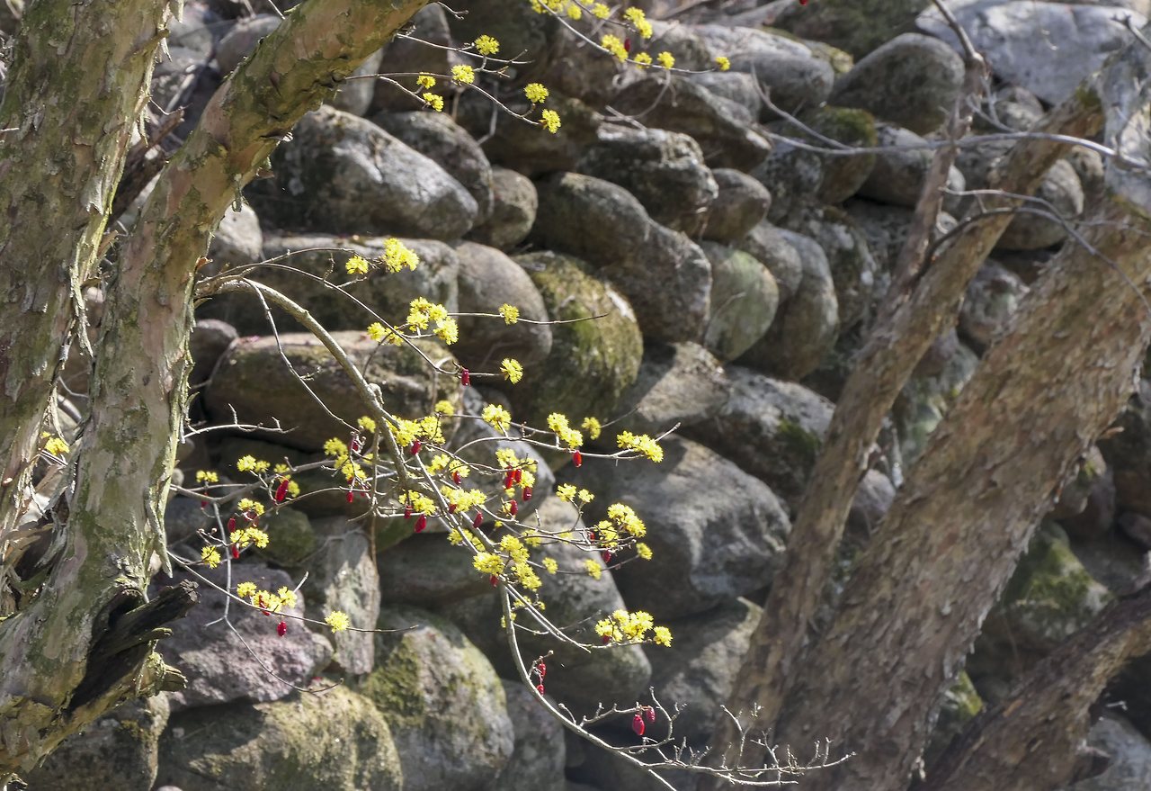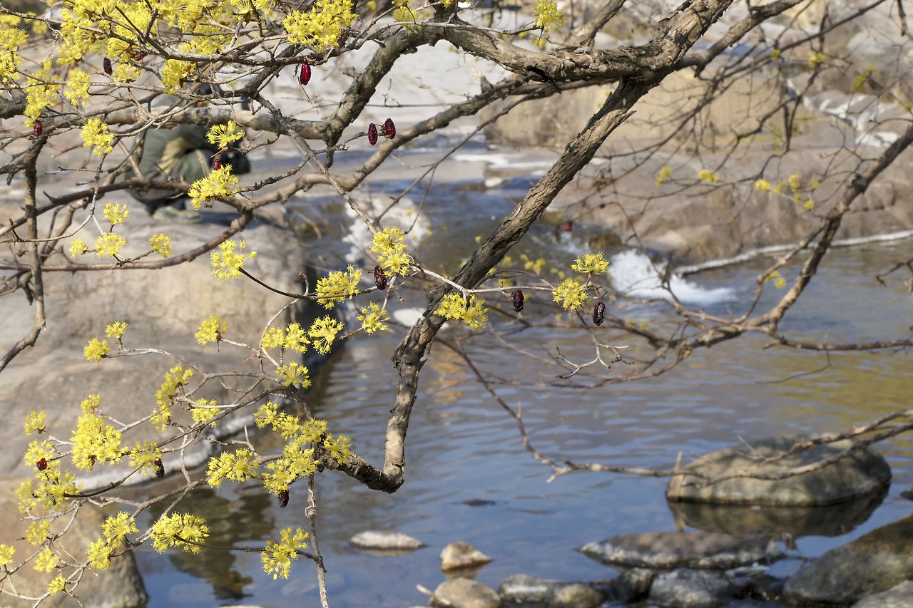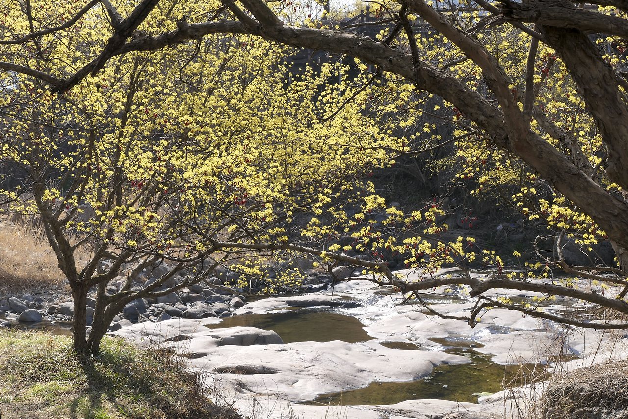 봄봄 봄이 왔다! 매화에 이어 산수유와 개나리 목련까지 하루가 다르게 꽃망울을 터트리고 있다. 특히 노란색을 좋아하는 내가 빠지지 않고 찾아가는 곳은 구례 산수유 마을인 반곡마을이다. 겨울의 흔적이 채 가시지 않은 너럭바위 위로 노란 팝콘을 뿌려놓기라고 한 듯 계곡에 핀 산수유 꽃을 보면 절로 입꼬리가 올라간다. 지난해 열렸던 빨간 열매가 남아 있어 더 예쁘다.
