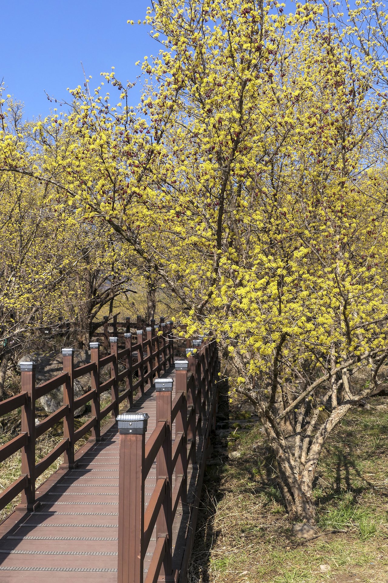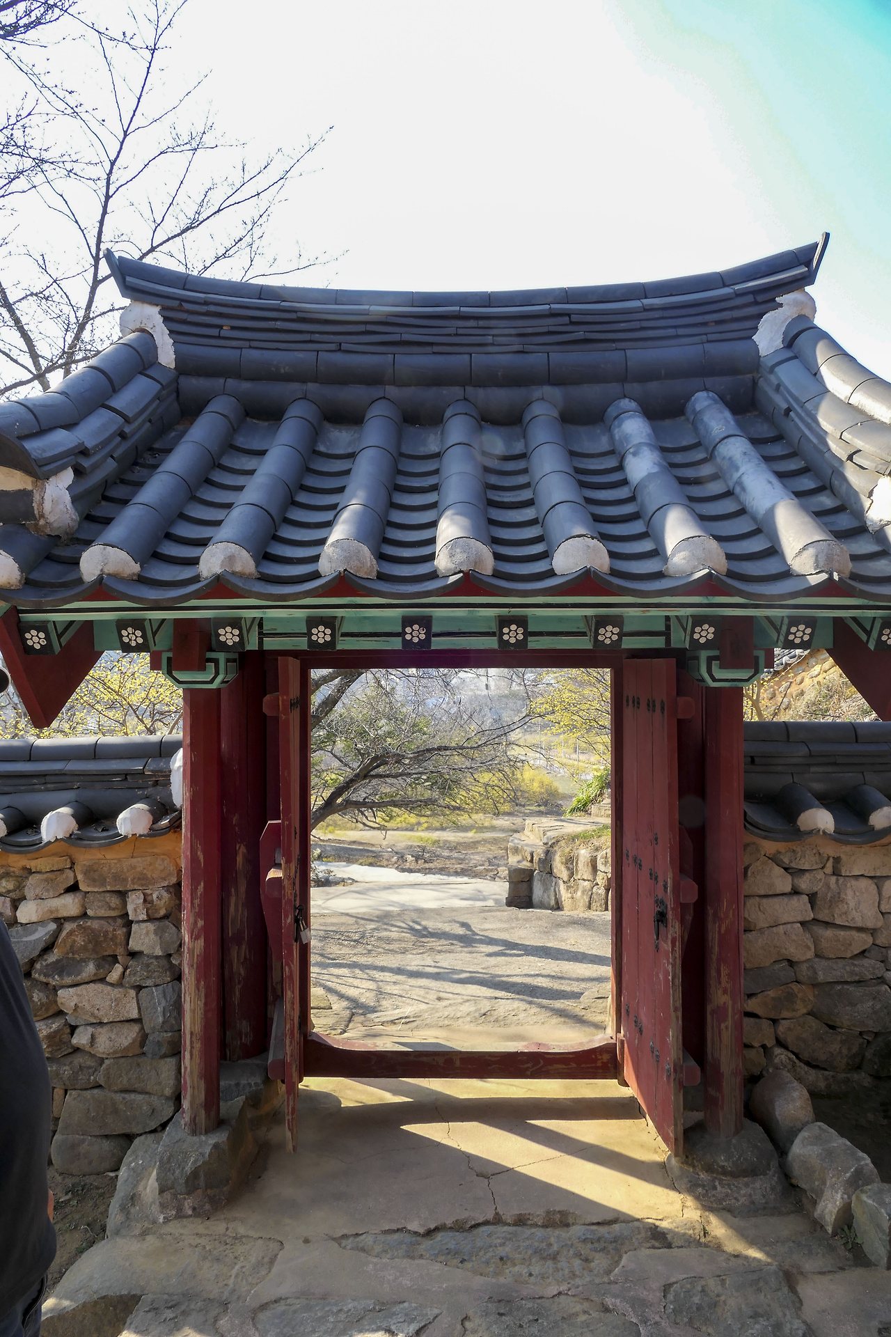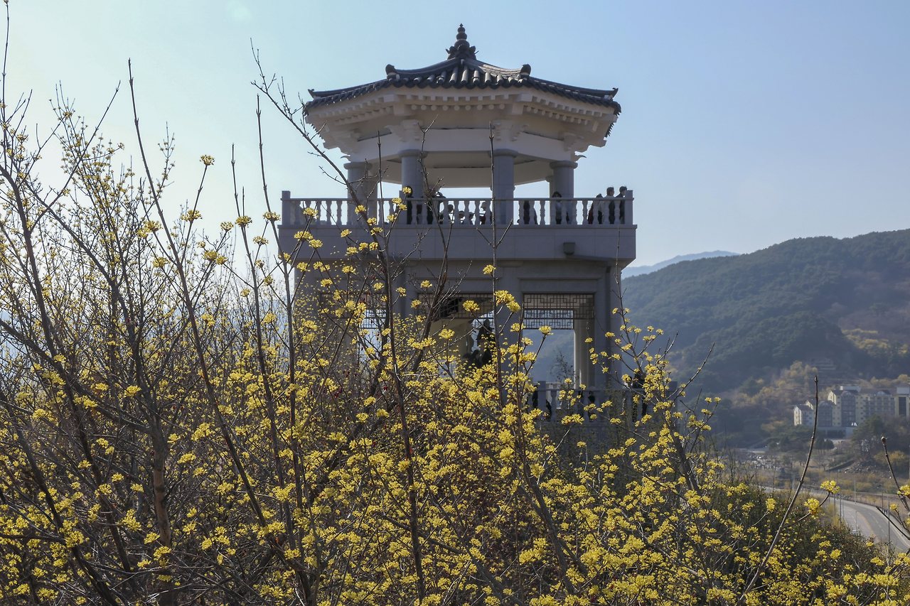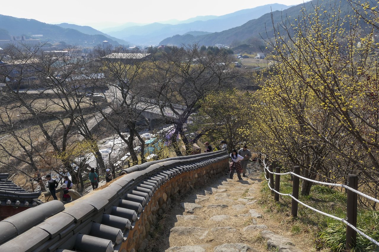 정상에서 내려다보니 수많은 사람들은 산수유에 묻혀 보이지도 않는다. 가을에 붉은 열매가 잔뜩 피면 또 얼마나 아름다울까? 어느새 다리가 절룩거리는 탓에 기왓장을 꽉 움켜잡으며 내려와야 했다.