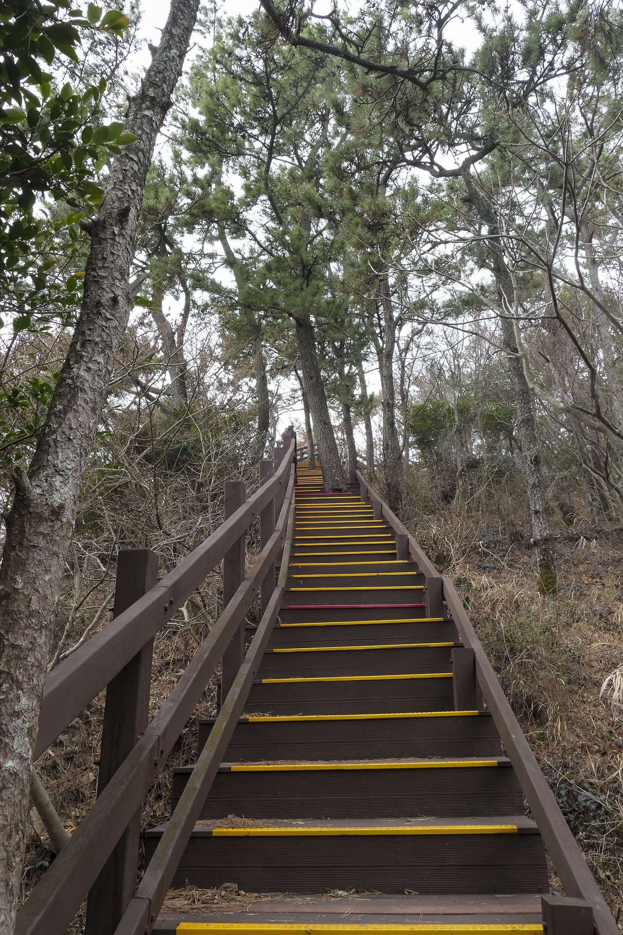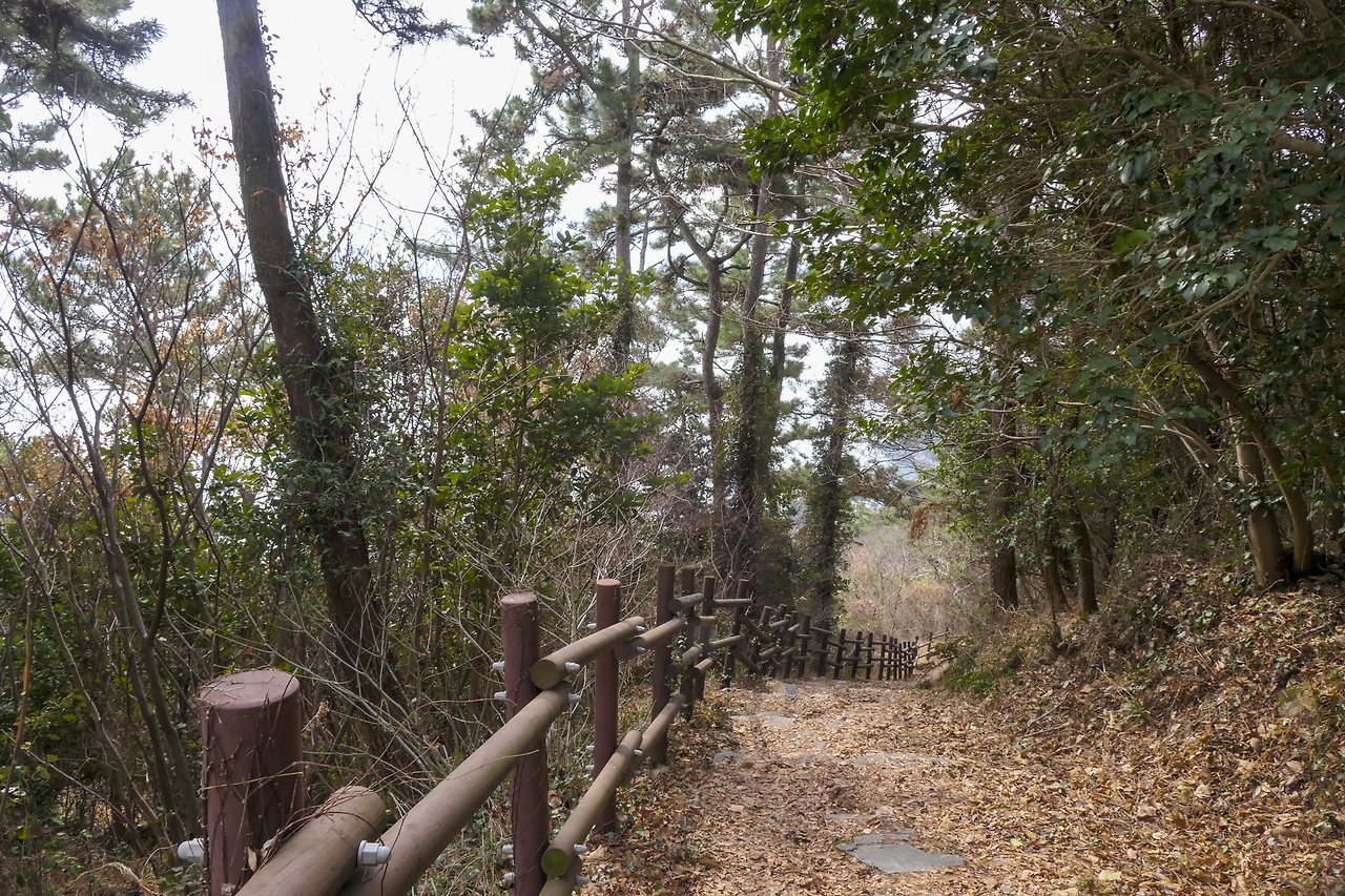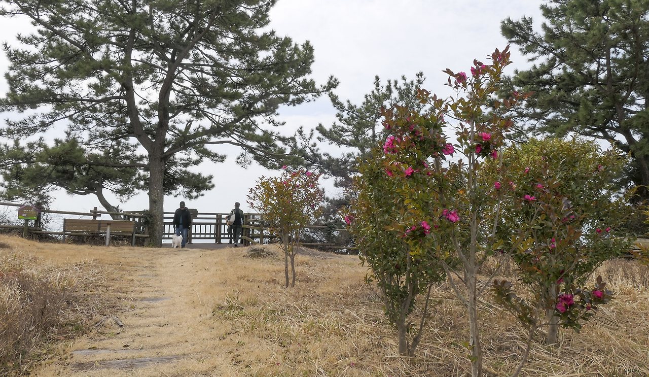 잘 가꾼 산책길에는 바닥에 돌도 깔려있고 위험한 경사길에는 경계목까지 꼼꼼하게 설치되어 있다. 나뭇가지 사이로 바다가 보이지 않았으면 그저 동네 뒷산을 걷고 있는 것 같다. 휘파람 새 몇 마리가 계속 따라오며 청아한 소리로 인사를 건넨다.