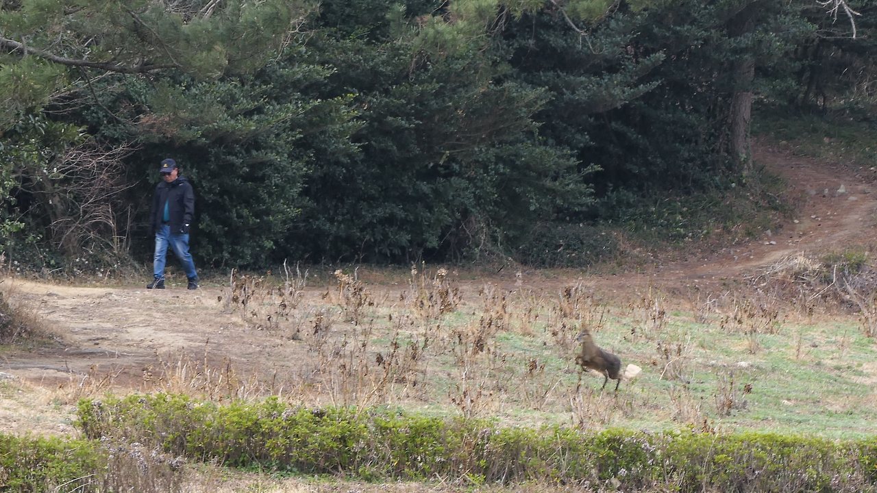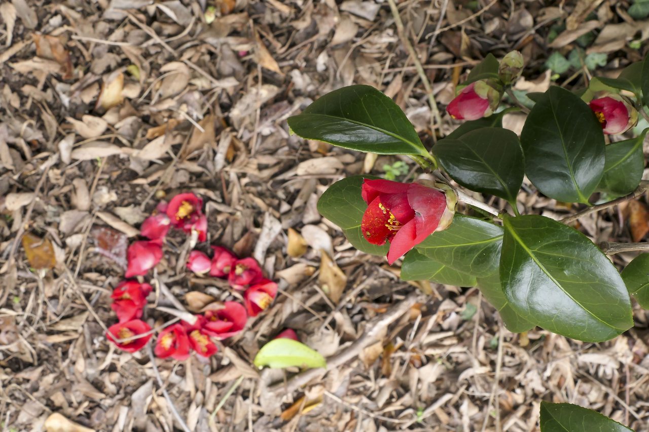 무심코 먹거리를 찾으러 나왔던 녀석은 갑자기 나타난 사람 때문에 혼비백산해 날뛰다가 숲으로 냉큼 가버린다. 꽃섬 가꾸기의 일환으로 심었다는 아기 동백나무가 활짝 피어었다.
