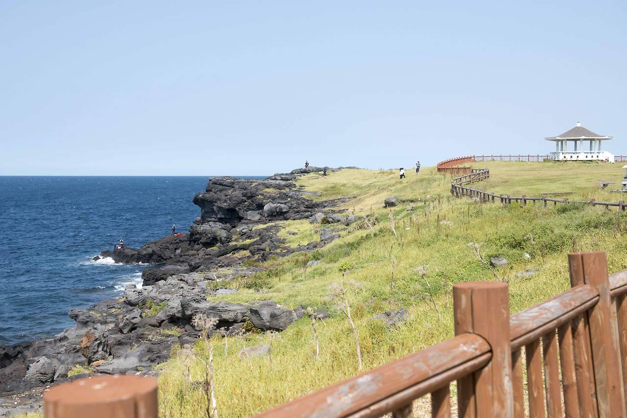 확 트인 시야 속에 푸른 초지를 거닐며 발아래 펼쳐진 해안절벽을 보는 것이 마라도의 매력이다.