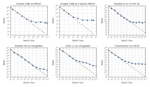 2019년에는 다양한 머신러닝 알고리즘 및 접근 방식에 대한 연구를 수행했습니다. 한 가지 주요 초점은 신경망에서 훈련 역학의 속성을 이해하는 데 었었습니다. 이 논문에서 강조된 데이터 병렬 훈련의 한계 측정 블로그 게시물에서, Google 연구원들은 데이터 병렬 처리의 양을 조정할 때(더 큰 배치를 만들어서) 모델이 더 빨리 수렴할 수 있는 효과적인 실험 결과를 제시했습니다.(데이터 병렬 처리 사용).