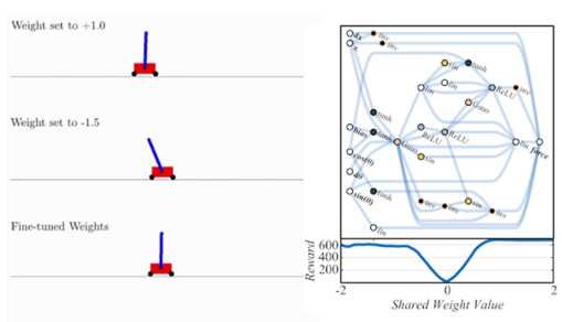 Exploring Weight Agnostic Neural Networks에서, 평가된 모델의 가중치를 업데이트하기 위한 교육 단계 없이 흥미로운 신경망 아키텍처를 찾는 방법을 보여주었습니다. 따라서 아키텍처 검색이 훨씬 더 효율적으로 계산될 수 있습니다.