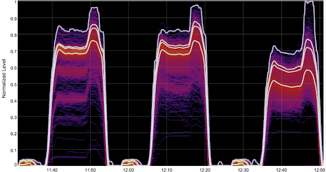 [그림7] 상세 설명 - 웹 검색 서빙에서 플래시 IO 요청의 히트맵(캐시 누락으로 인한 결과). 3개의 혹은 무작위 리프 선택, 로드 밸런싱 및 캐시 인식로드 밸런싱(왼쪽에서 오른쪽으로)을 나타냅니다. 선은 50번째, 90번째, 95번째 및 99.9번째 백분위 수를 나타냅니다. "데이터 센터 애플리케이션의 캐시 인식로드 밸런싱" VLDB의 19 논문에서 발췌했습니다.