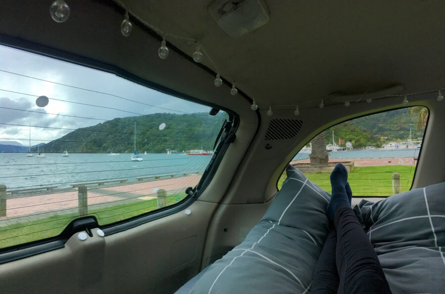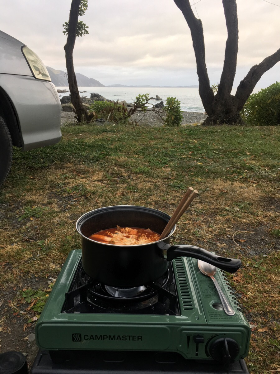 오후까지 픽턴에 늘어져 있다가 (말 그대로 아이스크림 먹고 뒹굴면서 늘어져 있었음) 블레넘 방향을 향해 아래로 달렸다. 픽턴과 블레넘 사이에 있는 다른 프리사이트를 찾았고 마침 바다 근처라서 하염없이 바다를 바라보며, 온갖 잡생각과 그것들을 붙잡기 위해 끄적거리는 메모 그리고 오랜만에 책 읽기로 하루 저녁을 보냈다.