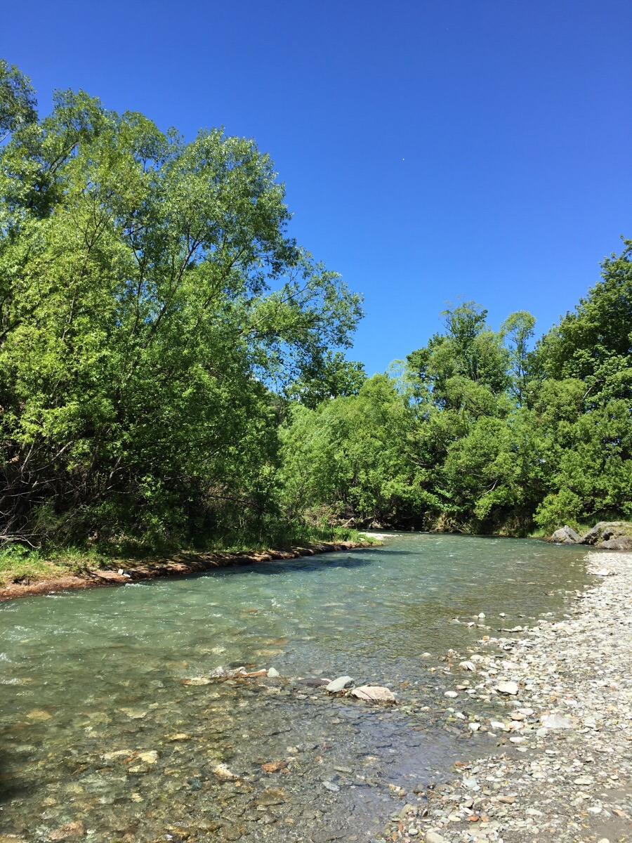 날씨가 좋아 냇가를 따라 한참 숲을 걷다가 돌아와서 좋은 경치를 반찬삼아 점심을 먹은 후,
