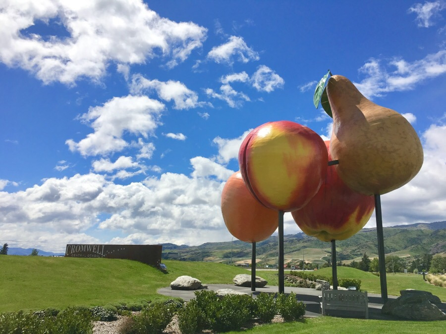 그리고 드디어 도착한 크롬웰! 마을 초입에서부터 좋은 느낌을 받았다. 여기는 진짜 작은 동네다. 구경할 것도 별로 없고 타운센터 가운데에 떡하니 과일 모형들만 서 있다. 12월-1월이 되면 체리 시즌이 시작돼 백패커들이 모여들고, 나머지 시즌에는 과일 농장이나 빈야드 일자리가 대부분인 것 같았다. 퀸스타운도 와나카도 가까운 곳이라서 살며 여행하기는 가장 좋은 곳인 것 같다.