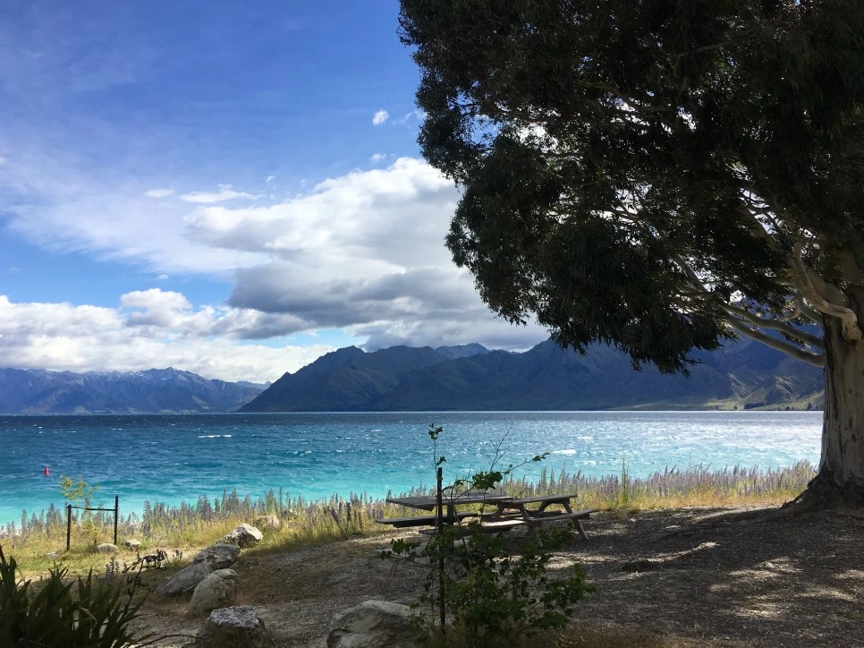 우리나라에서는 크리스마스에 친구들과 파티를 하는 등 좀 더 집 밖으로 돈다면, 키위들은 가족과 함께 많이 보내는 것 같다. 머물던 캠핑장에도 아이들을 동반한 가족들이 다수 도착해서 텐트를 치고, 낮에는 호수에 가서 보트를 타고 수영을 하고 놀다가 저녁에 돌아와 바베큐를 해 먹고 맥주를 마시며 늦게까지 수다를 떨다가 자더라. 아이들은 놀이터에서 신나게 소리 지르면서 놀고.. 그 전주까지만 해도 빈야드 워커들도 거의 다 빠져서 휑했던 캠핑장이 아주 떠나가라 시끄러워지니 나는 더욱더 떠날 곳이 필요해졌다. 그래서 크리스마스 기간에는 티마루 방향으로 올라가 테카포와 푸카키 호수에 다녀왔다. 고등학교 때부터 알바를 시작해서 대학교 때도, 그리고 사회생활을 시작하고 나서도 단 한번 크리스마스에 넋 놓고 쉬어본 적이 없는 것 같은데, 이렇게 여유로운 한 여름의 크리스마스 여유를 누릴 수 있다는 것에 너무나 행복했던 것 같다. 쉴 새 없이 두 시간 반을 달려 테카포 호수에 도착.