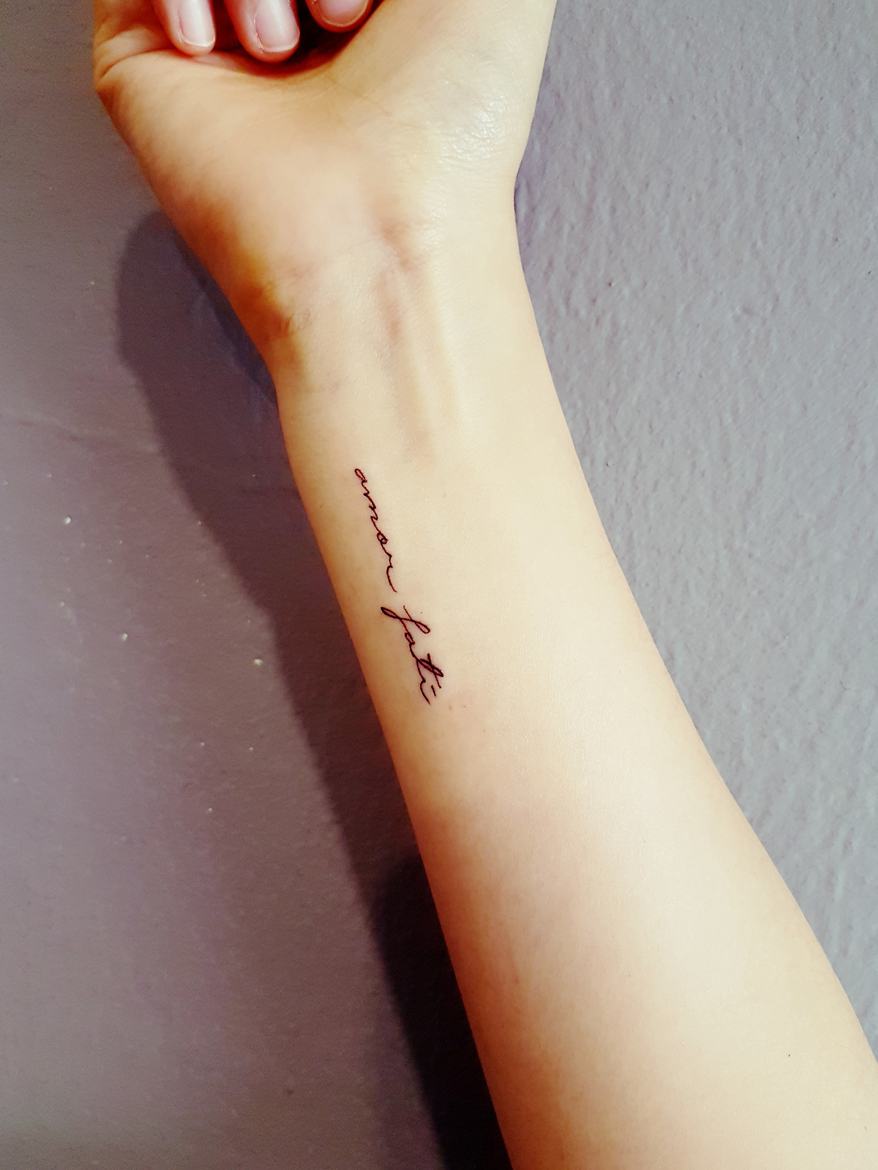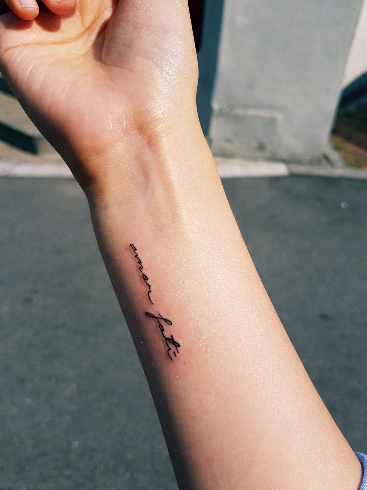 김연자 선생님의 신나는 곡으로 유명해진 말이다. 간혹 내 문신의 문구를 물어보고 "아모르파티요?(풉)재밌으시네요" 하며 날 그냥 '유쾌한 사람' 또는 '욜로족' 정도로 단정짓는 사람들도 있지만 사실 아모르파티는 그리 가벼운 뜻은 아니다. 경쾌한 트로트 가사처럼 마음가는대로 즐기며 살라는 뜻과는 조금 결이 다르다(물론 나도 그 노래를 참 좋아한다).