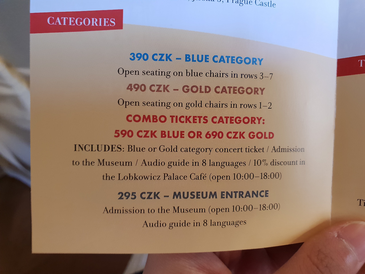 입장료는 390~490 코루나. 맨앞이 아니어도 전혀 상관 없다. 390 코루나면 한국돈 2만원 정도에 클래식 공연을 즐길 수 있는 셈이다.