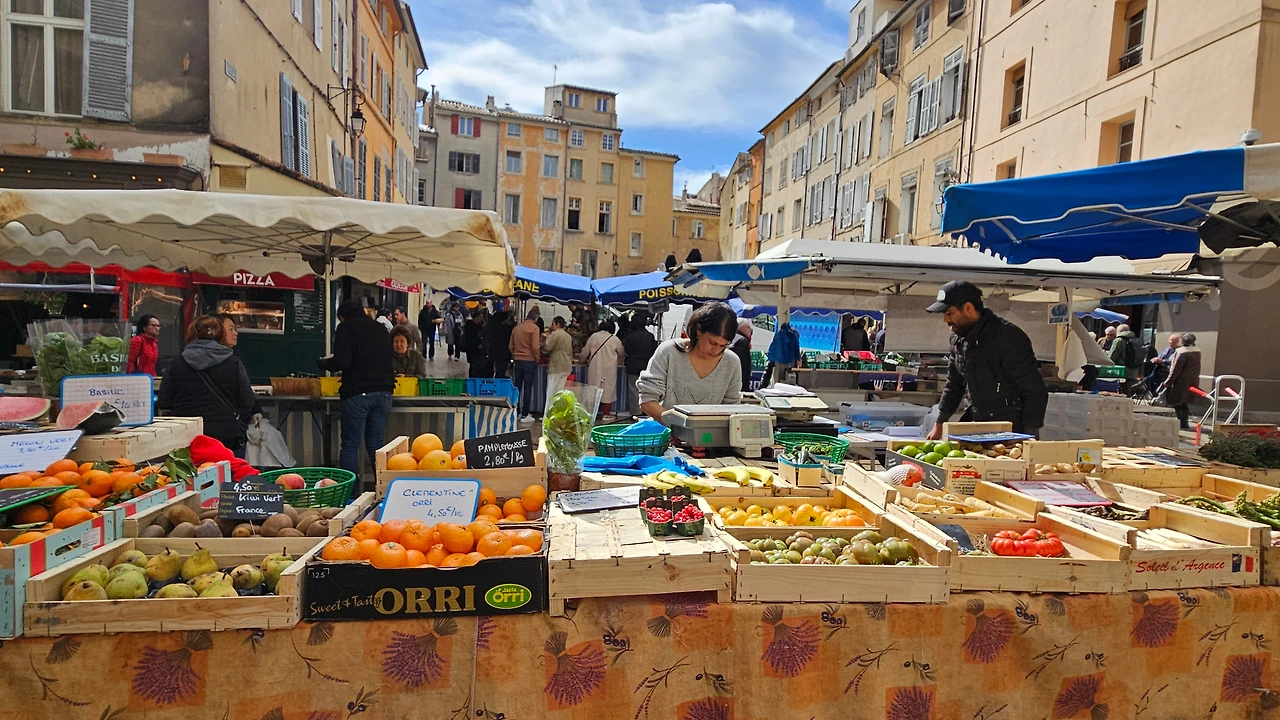 오늘 같이 장이 서는 날은 덤으로 화려한 남프랑스의 과채와 꽃을 실컷 구경하는 운도 따라온다.