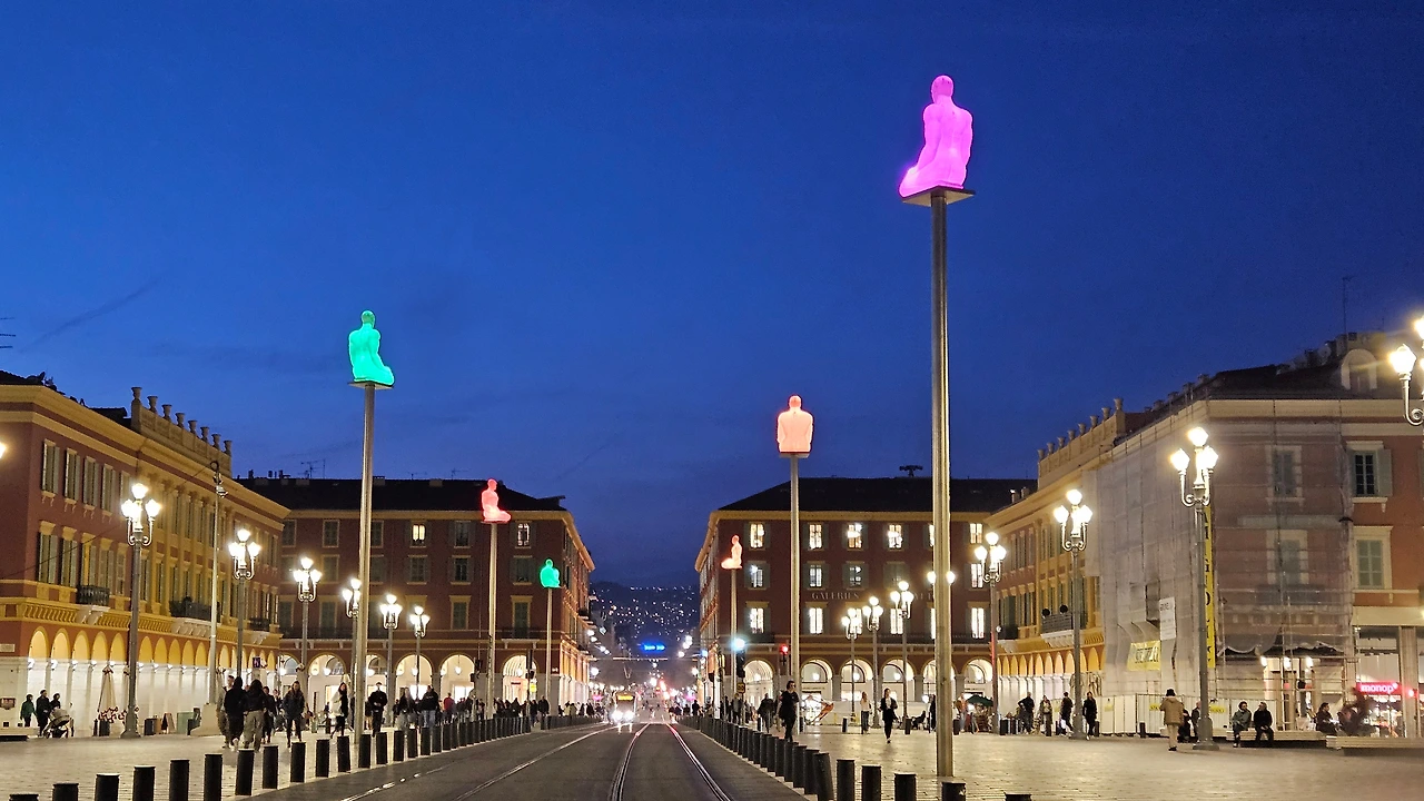 곧은 그대로를 달리는 트램은 막대 위의 사람형상을 한 조형물을 지나 분수를 중심으로 형성된 마세나 광장으로 이어진다.