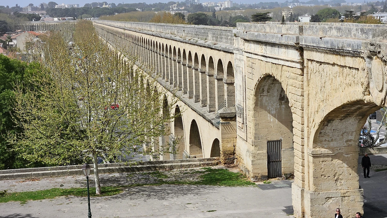육각형의 정자는 집수장이다. 길이 880m의 수로교를 보기 위해 분수뒤로 올라가니 만족한 조망을 보여주는 날씬한 돌다리. 높이는 22m의 수도교를 보며 아득해진다.