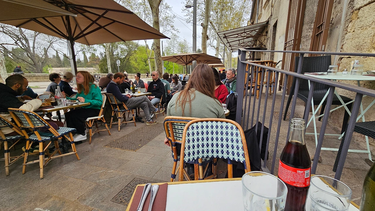인도를 다 차지해서 식사하는 테이블 사이를 걸어서 지나가야 했다.