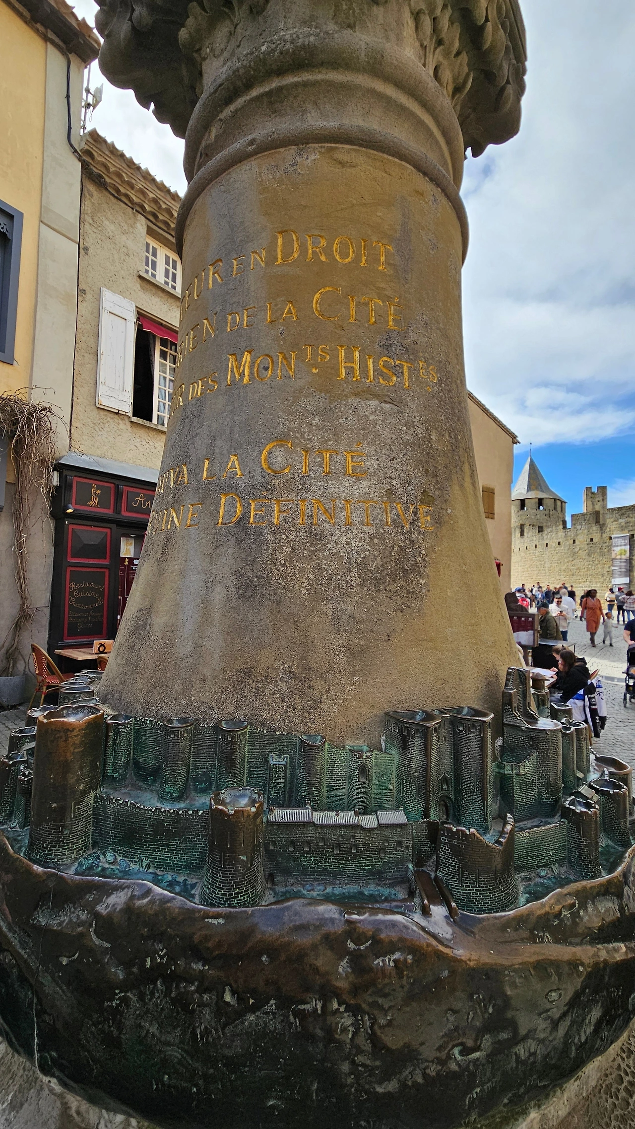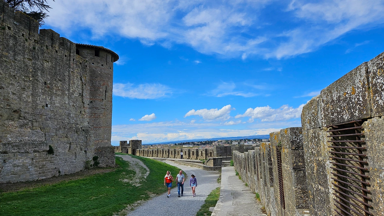 카르카손. 2세기부터 요새화가 진행되었다고 한다. 6세기에 첫 번째 성벽이 만들어졌다. 와인전쟁과 여러 번의 전투로 성의 외곽은 이중으로