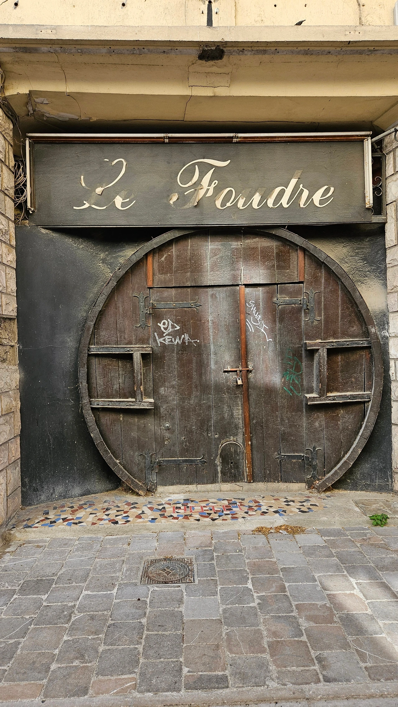 반 지하처럼 느껴지는 식당의 창 너머로 중세의 장면에 상영되는 듯하다.
