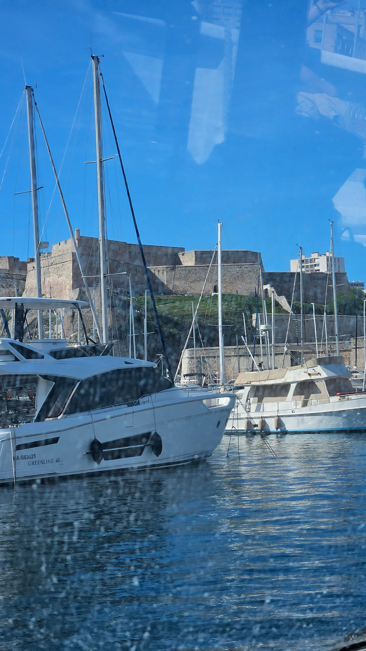 마르세유 항구를 출발하며 성당이 보이는 언덕과 멀어지는 성곽이 아련하다.
