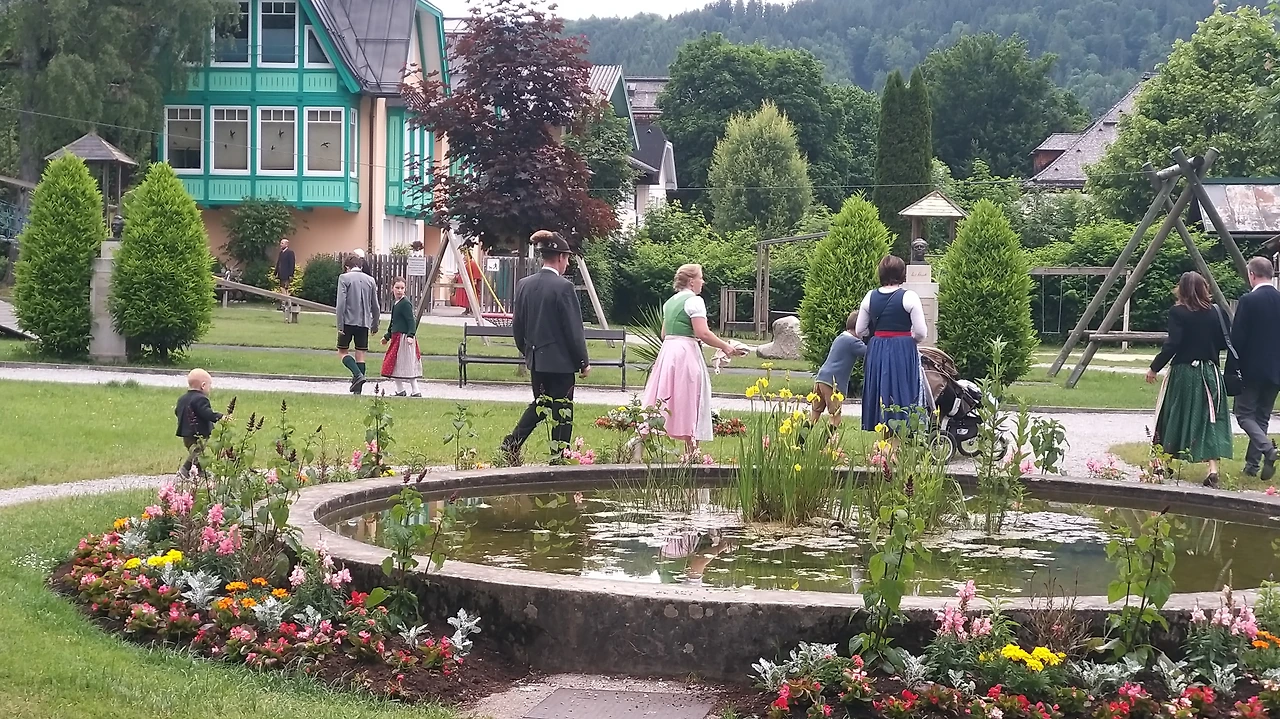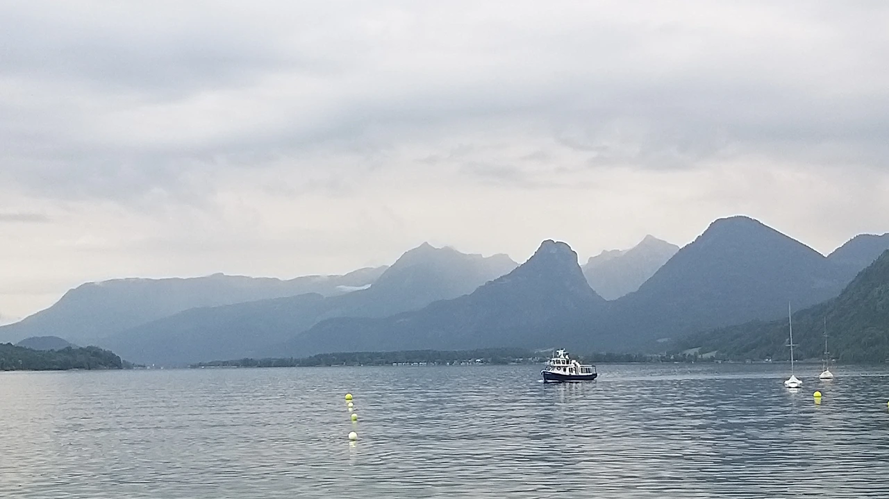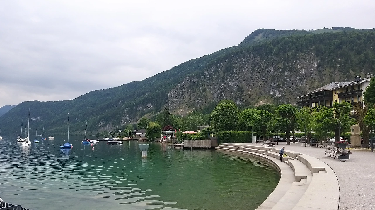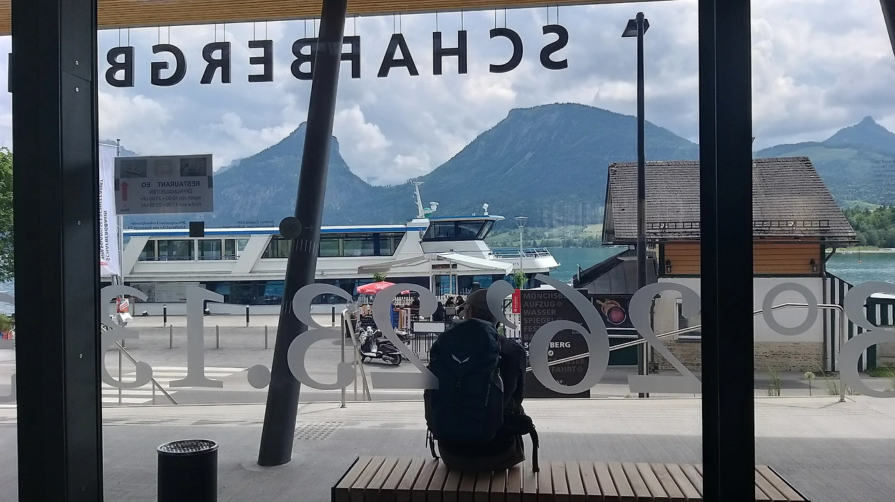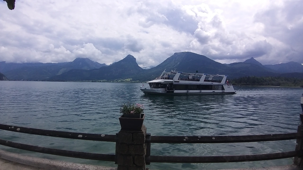 배를 타고 장크트 울프강으로 가서 산악열차 샤프베르그를 타기 위해 장크트길겐마을에