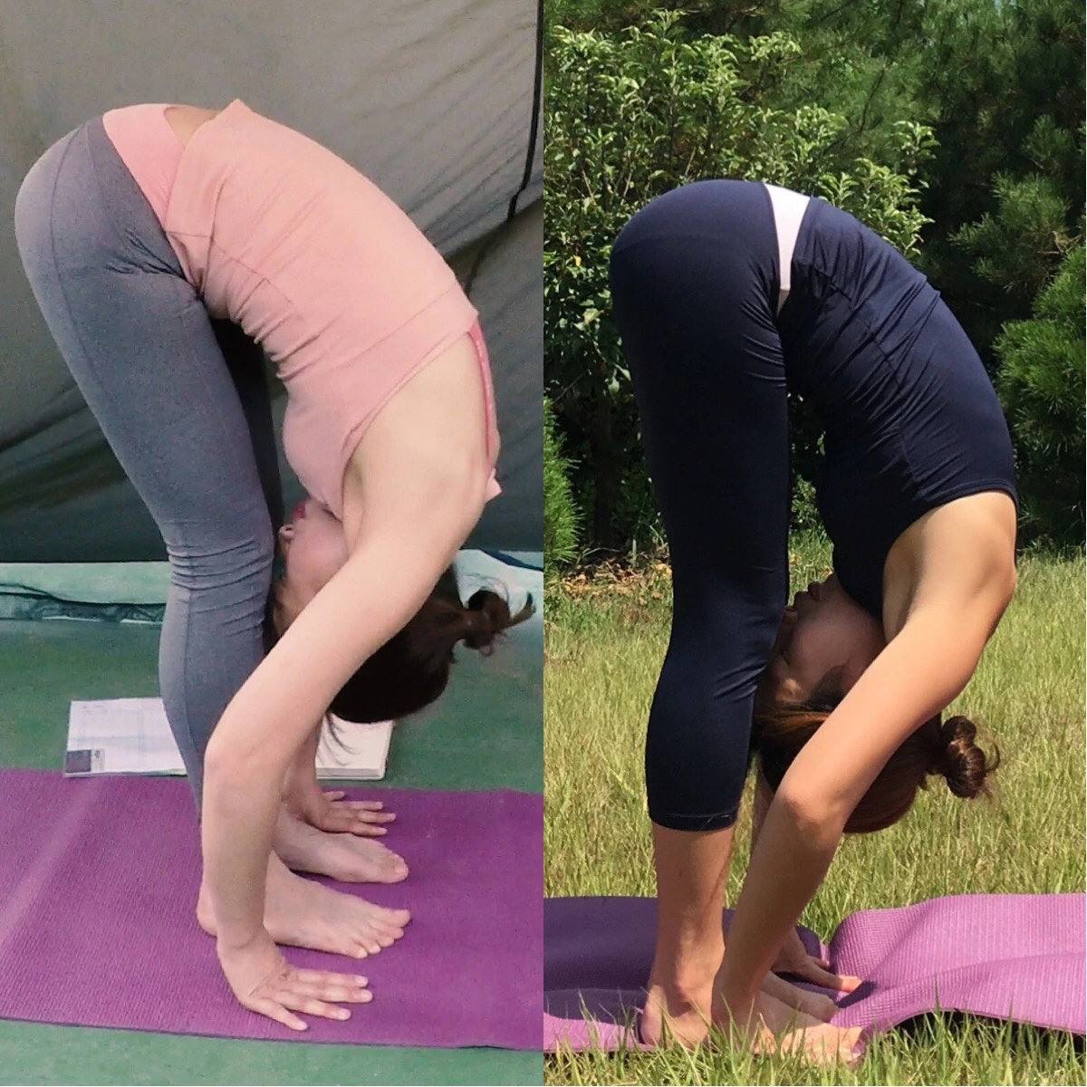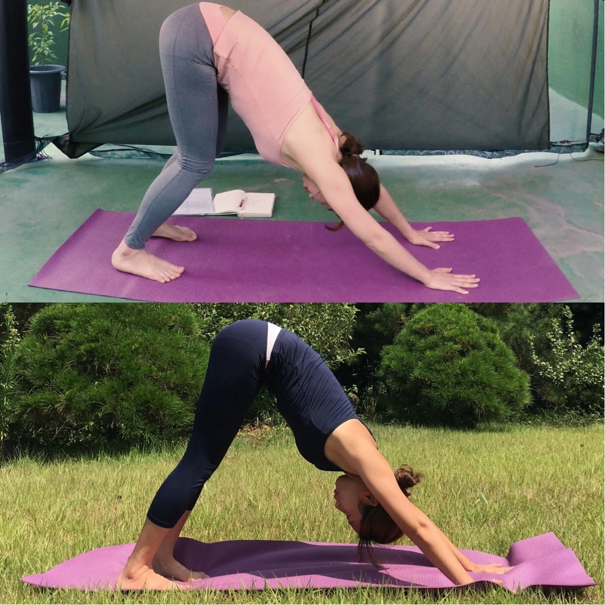 그런데 그 노력이 빛을 발하긴 했다. 한 달만에 제법 나의 다운독과 우타나사나가 개선된 것이 눈으로 확인된 것이다.