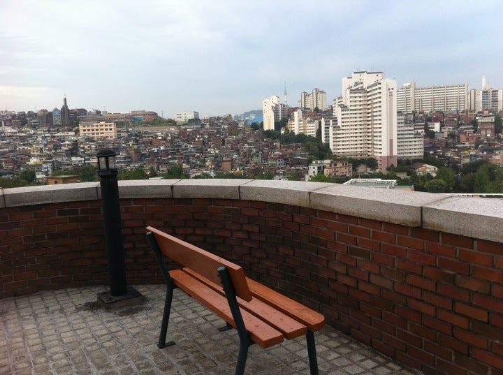 대학교 다닐 적에는 D관 테라스에 비치된 자판기 커피가 최애였다. D관 독서실에서 문을 열고 나가자마자 근사한 전경을 담은 테라스를 만날 수 있기 때문이다. 지금은 새 건물이 전방에 자리 잡고 있어 시야를 해치고 있었으나, 라떼 시절에는 테라스 앞으로는 고층 건물들이 없어 한강도 감상할 수도 있었다. 매년 10월마다 열리는 서울불꽃축제도 미어터지는 한강공원에 가지 않고 여기 테라스에서 운치 있게 감상할 수 있었다. 동편으로는 언덕에 오밀조밀 옹기종기 모여있는 주택들이 보였다. 비록 원거리라 사람들까지 보이지 않으나 밀집된 주택들을 바라보며 저들의 삶은 어떨까 상상해봤다. 집들로 빽빽한 언덕 너머엔 희미하게 남산타워가 드러났다. 야간에는 남산타워에서 뿜어내는 불빛도 선명하게 관찰할 수 있다. 답답하고 숨 막히는 독서실 공기와 전공서적 잠시나마 잊게 해주는 소소한 힐링의 장소였다. 그러면서 자판기에서 뽑은 밀크커피 한 잔이 그렇게 맛났다. 그때 맛은 루왁커피와도 비교할 수 없을 만큼 고급지고 독보적이었다.