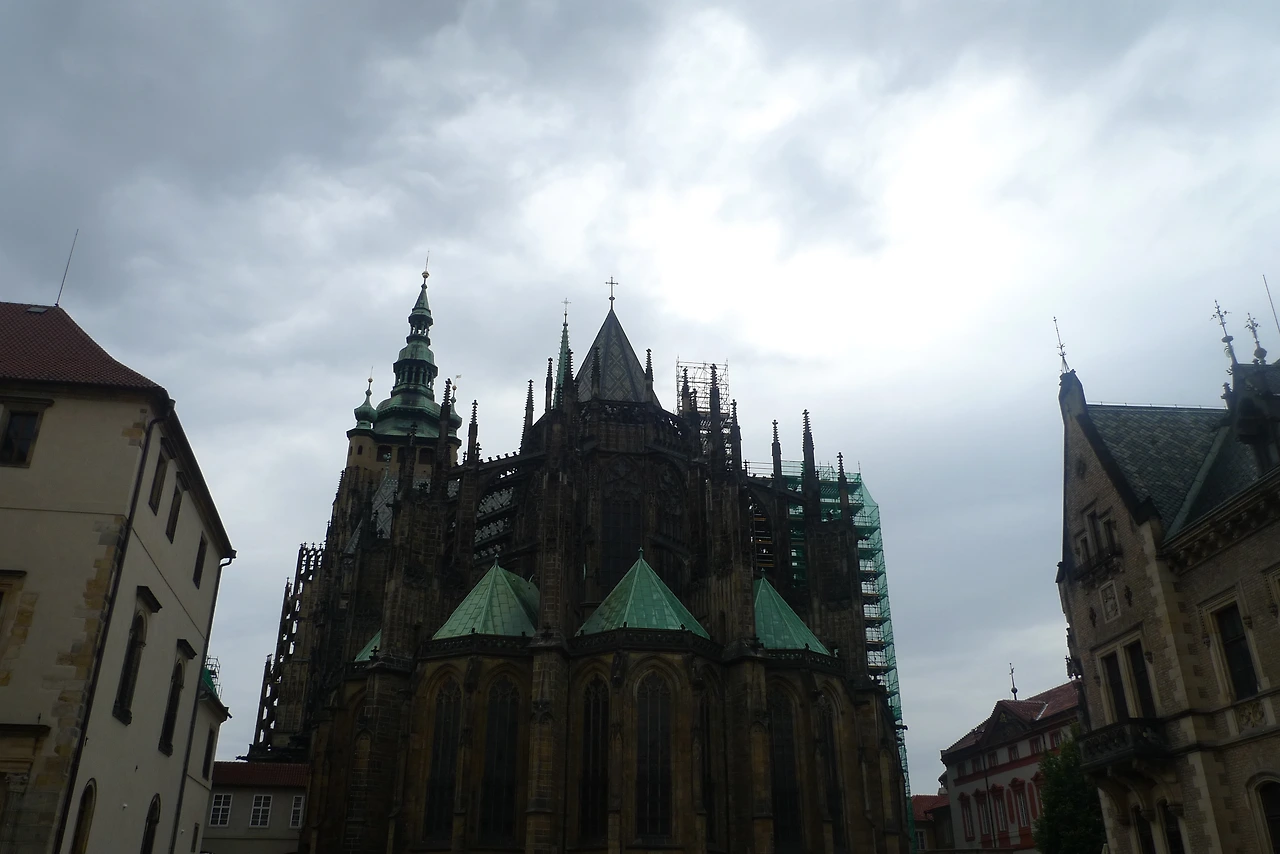 카를교 부근, 프라하성 가는 길. 다시 비가 쏟아졌다. 사람들이 게릴라성 강우를 피하려고 재빨리 건물 속으로 들어가거나 우산 펴기에 바빴다. 일단 허기진 배를 채우고 싶었고, 때마침 맥도날드를 상징하는 M자 간판이 보였다. 맥도날드에 들어서자, 소나기가 지나가길 기다리는 사람들이 대부분이었다. 나 또한 1유로짜리 햄버거를 먹으며 기다렸으나, 좀처럼 그칠 기미가 보이지 않았다. 결국 빗 속으로 뛰어들어 프라하성으로 빠른 걸음으로 움직였다.