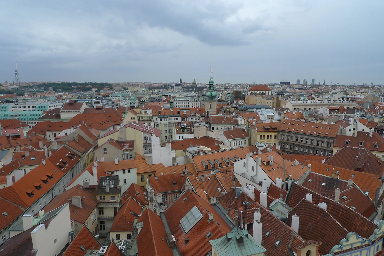 전망대 정상에서 구시가 광장을 중심으로 프라하 일대를 구석구석 살폈다. 전망대까지 올라오는 사이 광장 일대는 붐볐다. 비가 그친 효과가 있었는지, 건물 내부에 숨어있던 사람들이 밖으로 흘러나오고 있었다. 그러면서 나도 모르게 사람 구경을 하기 시작했다. 열댓 명 이상 뭉쳐있으면서 깃발 하나 들고 있다면 투어 관광객들이었다. 다정한 커플이나 친구들, 쓸쓸한 솔로도 또렷하게 보였다. 또 건물 지붕 색깔들이 프라하 구역들을 나누는 듯했다. 빨갛고 주황빛을 드러내는 삼각지붕과 각진 건물들은 옛날부터 자리 잡은 구시가지, 그 뒤로 곡선형이나 직사각형으로 하늘 높이 솟은 건물이 자주 보인다면 신시가지였다. 한국과는 많이 다른 풍경이라 오랫동안 머릿속에 가득 저장하려고 눈에 잔뜩 힘을 줬다.
