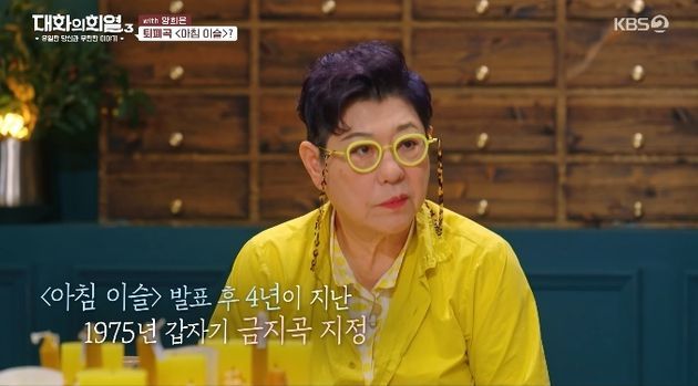양희은이 마음에 들어했던 마지막 가사 부분은 민주화 운동 현장에 있던 사람들에 의해 다르게 바뀌었다. 그들은 "서러움 모두 버리고 독재 정권의 억압도 끊어버리고 나 이제 가노라"라고 외치면서 저항했고, 그렇게 '아침 이슬'은 민중가요 대표곡이 됐다. 이 영향 때문인지 '아침 이슬'은 1975년 금지곡으로 지정됐고, 아직까지도 금지곡으로 지정된 이유가 무엇인지 밝혀지지 않았다.