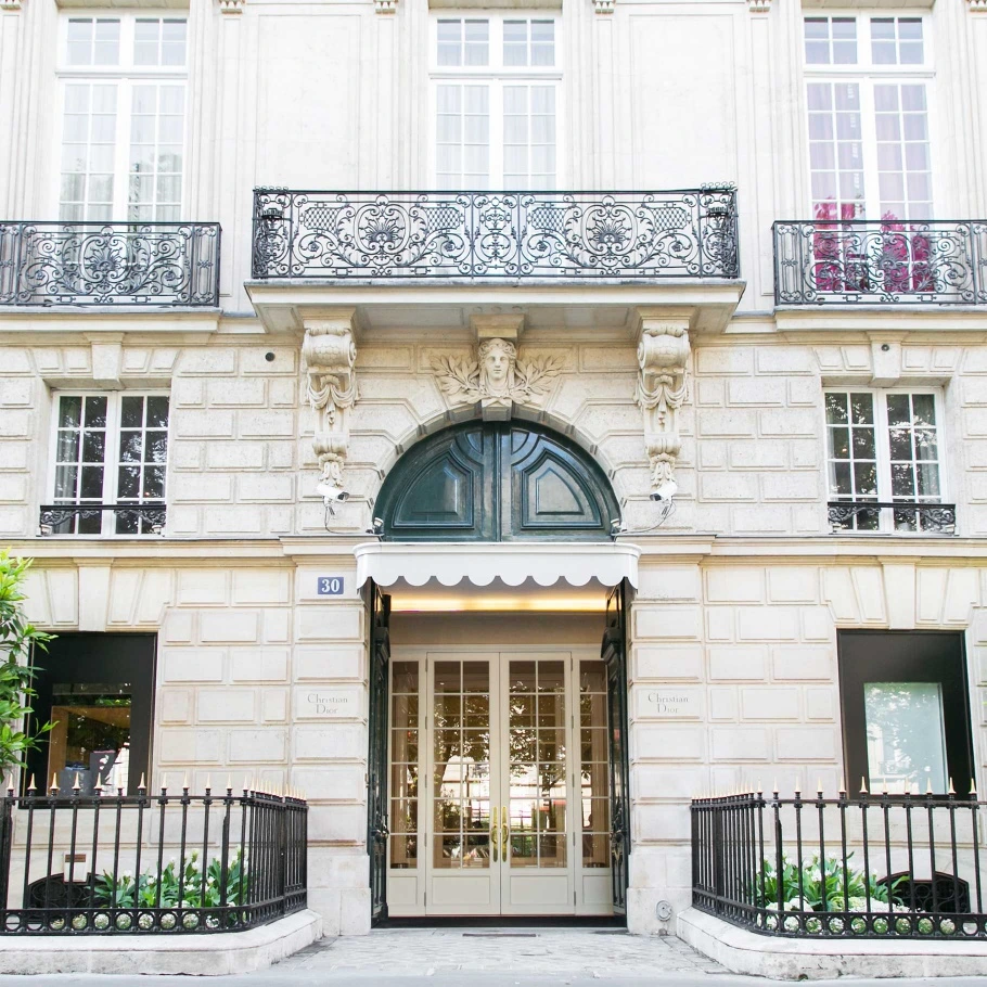 디올 하우스는 프랑스 파리 몽테뉴 30번지에 위치한다. 그 곳은 디올이 디자이너가 된 이후 오래전부터 눈여겨보았던 저택이었다. 그가 느끼기에 그 곳은 가장 완벽한 비율을 자랑하며 절제된 우아함이 돋보이는 곳이라 생각했다. 그리고 그는 맞은편에 있는 ‘플라자 아테네’ 고급스러운 최상급의 호텔을 보며 저 곳을 드나드는 아름다운 셀러브리티들이 그가 만든 옷을 입었으면 좋겠다는 마음을 가지고 위치를 선정했다.