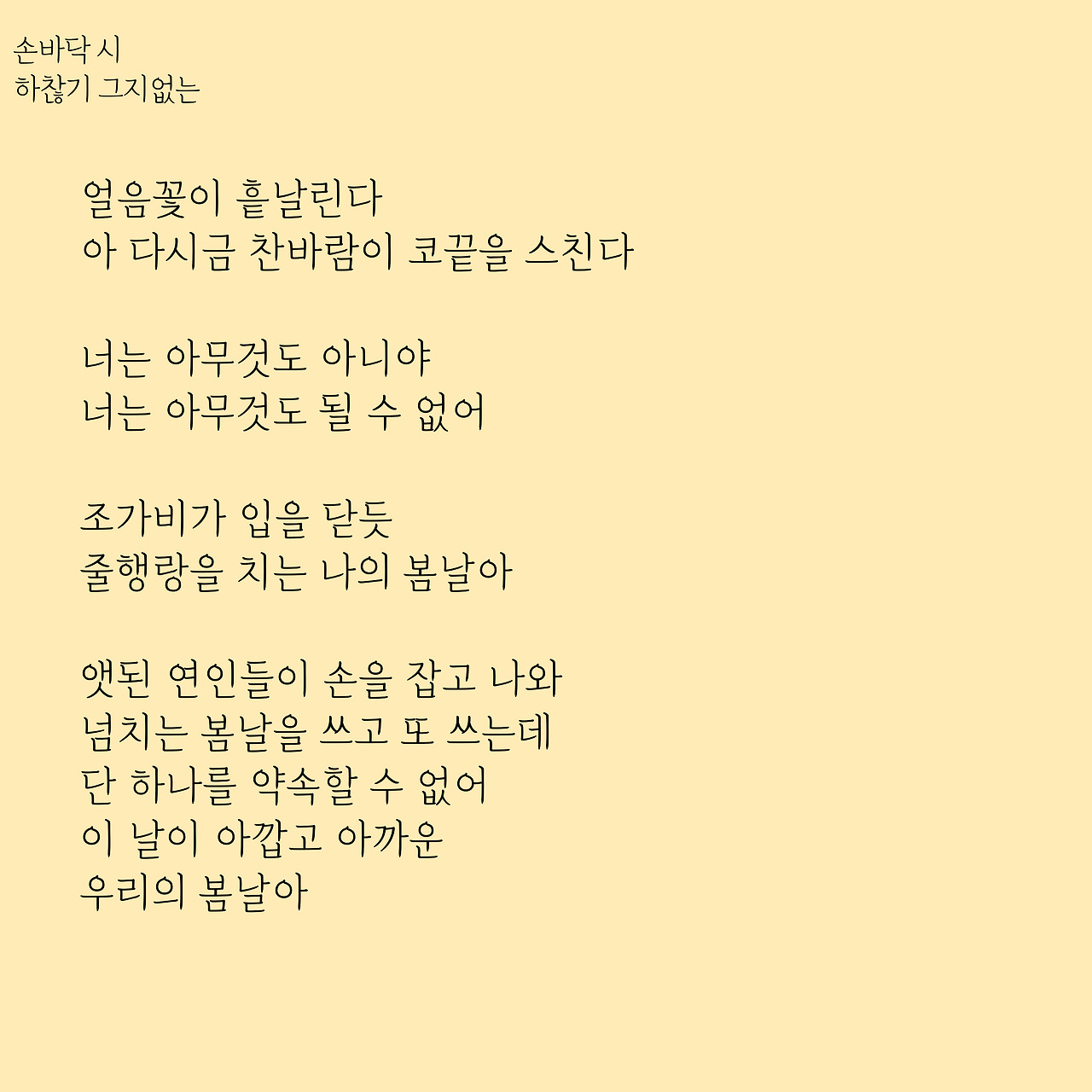 수 많은 봄을 사랑하는 이에게는 하찮기 그지 없는