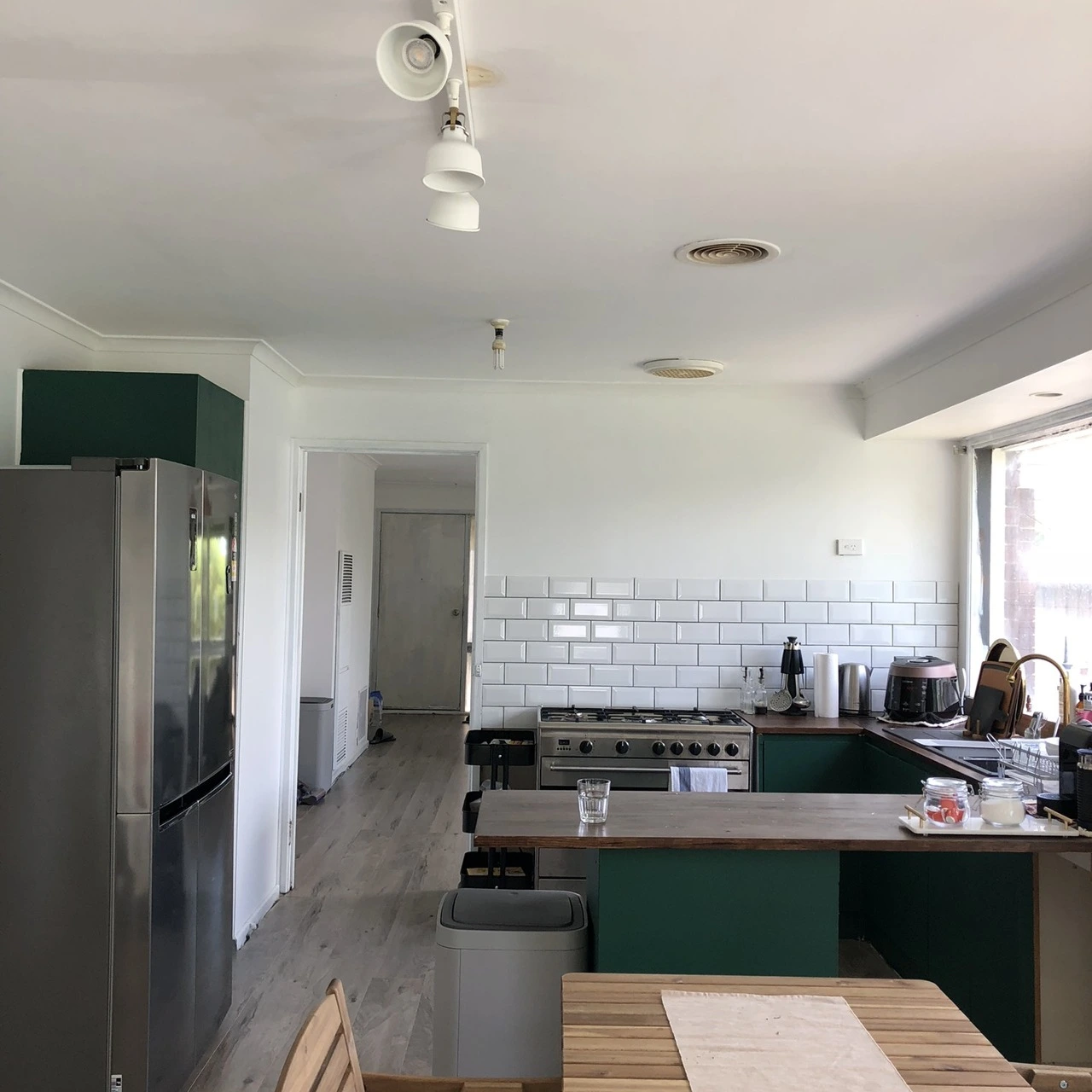 우선 집을 바닥재부터해서 전체적으로 다 철거를 한 뒤, 하나하나 고쳐나가기 시작했다. 바닥을 새로 깔아야 하는데, 그러려면 페인트칠을 먼저 해야 한다. 바닥부터 깔면 나중에 페인트가 바닥에 떨어질수 있기 때문이다. 그리고 페인트가 완벽하게 되어있어야 가구들도 배치 할 수 있다. 그래서 철거 뒤 우리가 제일 먼저 작업했던 것은 페인트 작업이었다. 벽, 천정, 창틀, 문, 문틀까지 일일이 우리가 다 칠했다. 우리 손을 거치지 않은 곳이 없었다. 페인트 칠도 한번만 칠하는게 아니라 전에 있던 얼룩을 지워야 하기때문에 베이스로 먼저 칠한뒤 우리가 원하는 컬러로 두번 세번 덧칠을 해야한다. 나도 그렇지만 남편이 정말 고생이 많았다.