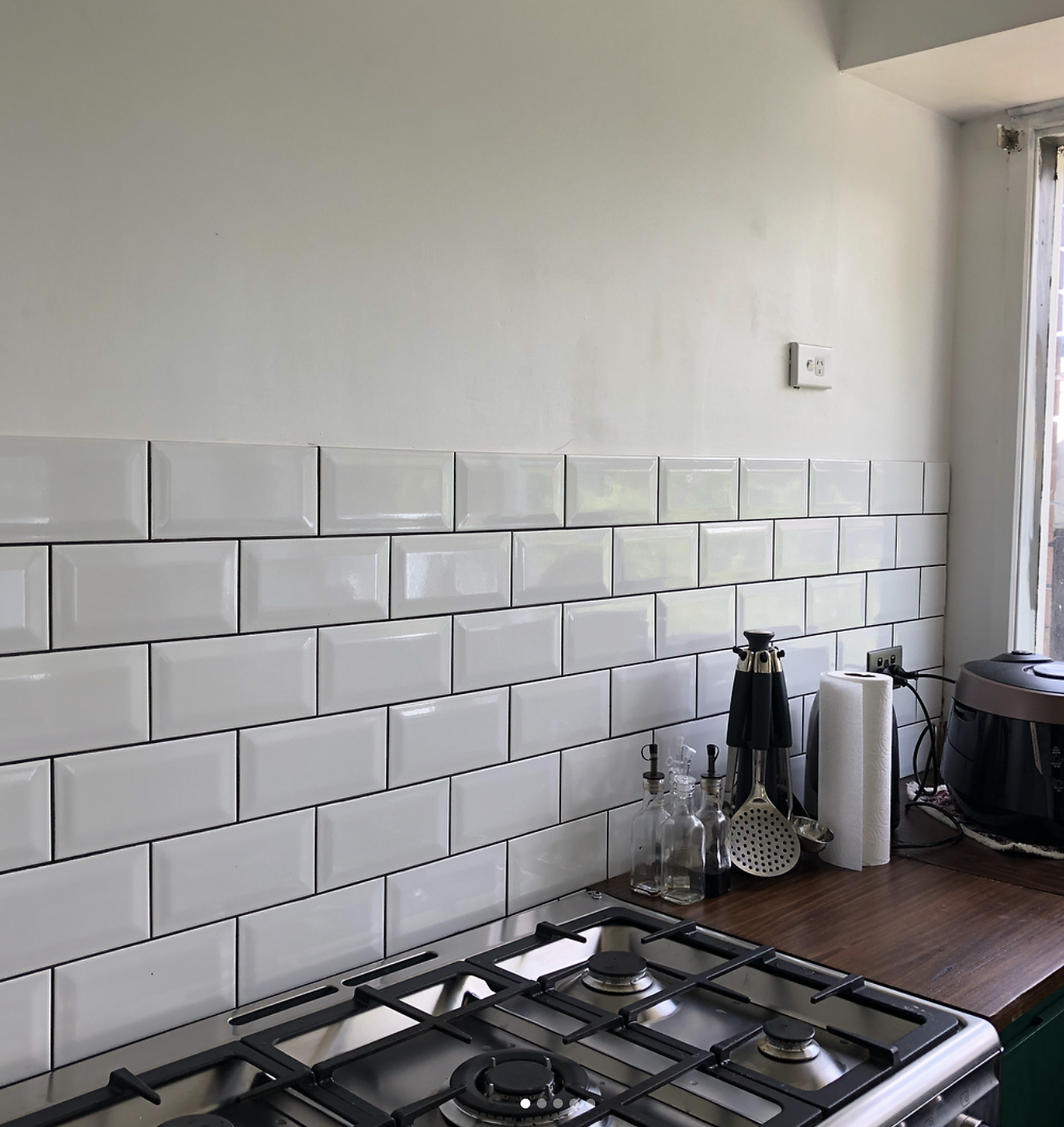 타일은... 이건 전문가에게 맡겼다. 그런데 타일만큼은 정말 전문가에게 맡겨야 한다는 걸 작업하는 걸 보고 깨달았다. 작업하는걸 살짝 봤는데, 이것마저 남편에게 시켰다가는 사람 잡을 뻔했지 뭐람. 부엌 가스레인지 위에 부분과 화장실 바닥 타일 까는 거 합쳐서 600불 정도 지불했다. 물론 타일은 우리가 샀다.