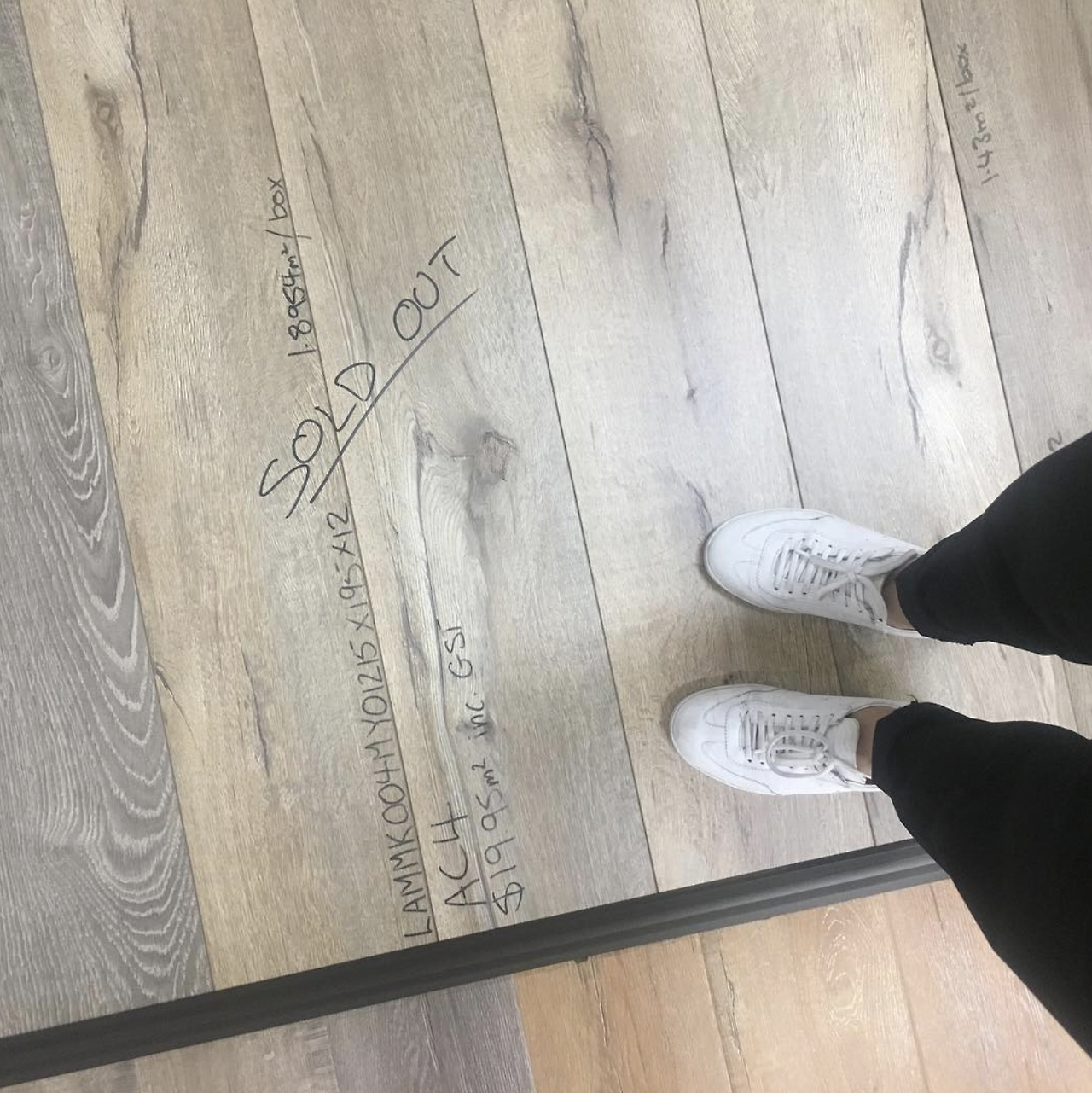 이제 바닥을 깔아볼까. 진짜 나무를 깔려고 했지만, 가격이 너무 비쌌다. 그래서 무늬만 나무 인척을 하는 래미네이트를 깔기로 한다. 그래도 사진처럼 꽤나 진짜 같았다. 바닥재도 종류와 색깔이 다양했다. 내가 집을 사면서부터 눈여겨보던 프렌치 스타일의 그레이쉬한 나무 바닥은 끝내 포기할 수 없었다. 딱 내가 원하던 컬러가 있어서 우리 집 사이즈에 맞는 수량으로 아니 조금 더 넉넉하게 주문했다. 우리가 사고 나니, 직원이 우리가 산 모델 샘플에 솔드아웃을 적었다. 럭키!