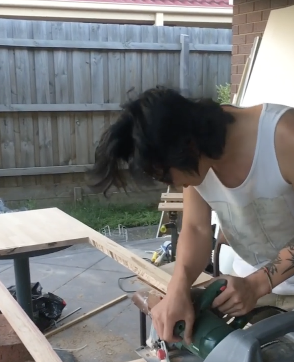부엌 이야기는 아직 끝나지 않았다. 오른쪽 사진에 보이는 나무 벤치탑. 저것 역시 남편의 노고가 들어간 것이다. 사람의 욕심이란 것이 끝이 없어서, 벤치탑을 나무로 하고 싶어서 이미 만들어진 기성품을 찾아보니 가격이 생각보다 비쌌다. 이쯤 되면 우리가 누구냐, 비싼 건 살 수 없어도 싸게 사서 우리의 막노동을 가미시키는 셀프의 달인이 되시겠다. 목재시장을 찾았다. 멜버른 시티 근처에 그런 곳이 또 있긴 있더라. 남편이랑 가서 벤치탑으로 쓸만한 나무판을 샀다.