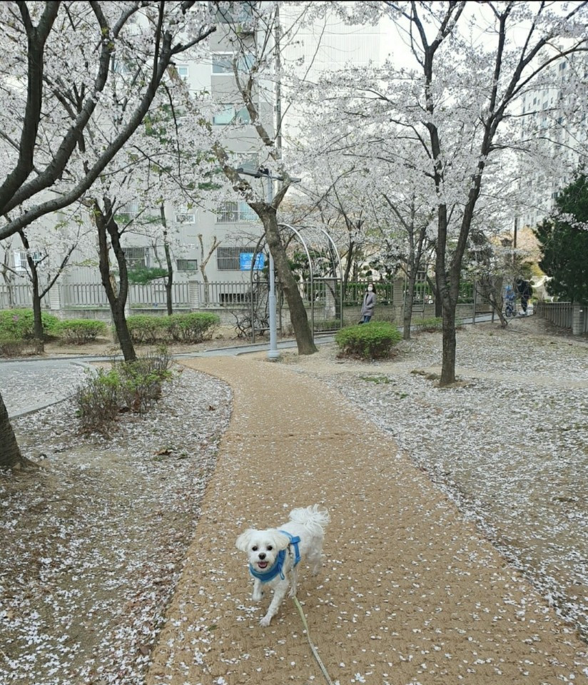미안하고 짠한 마음에 집에 돌아오자마자 옷만 대충 갈아입고 봄이와 산책을 나간다. 비가 오는 날이나 피곤하고 귀찮아 거르는 날도 종종있지만, 대개는 늦은 시간이라도 잠시 동네 공원 한바퀴 돌고 온다. 봄이와의 산책은 나에게도 의미있는시간이다.