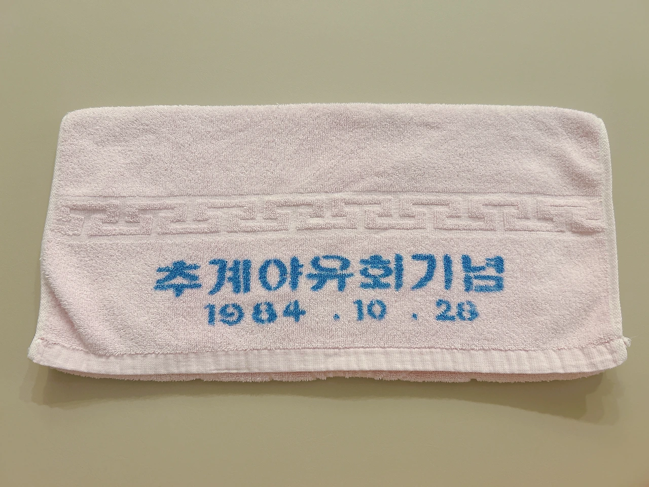 그 수건에는 “1984. 10. 28. 추계야유회기념”이라고 적혀 있었다.