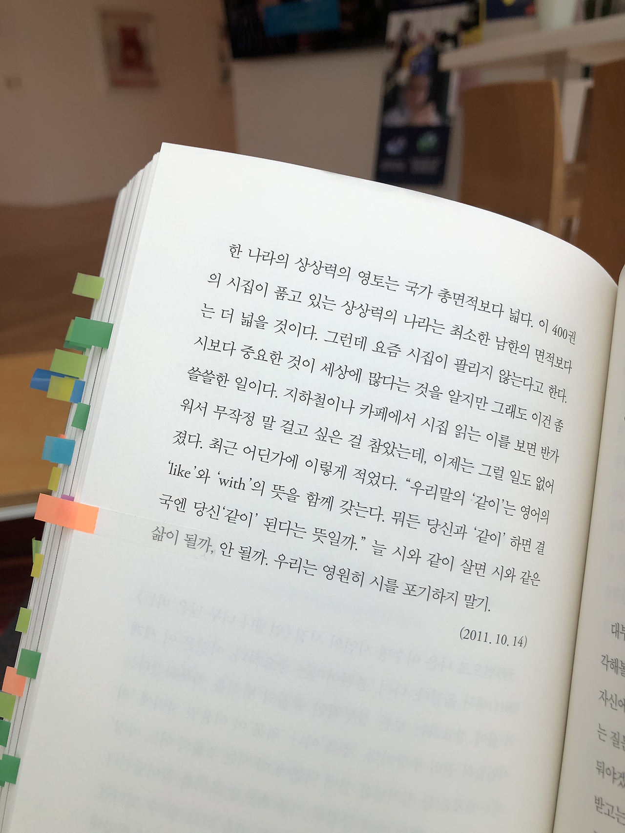 정부의 단계 상향으로 인한 재택근무로 사무실이 부쩍 조용해졌다. 덕분에 나는 혼자 책을 읽으며 점심을 먹을 수 있었다. 오후의 따사로운 햇살을 맞으며, 적절한 온도에서 배까지 채우니 만족스러울 수밖에.