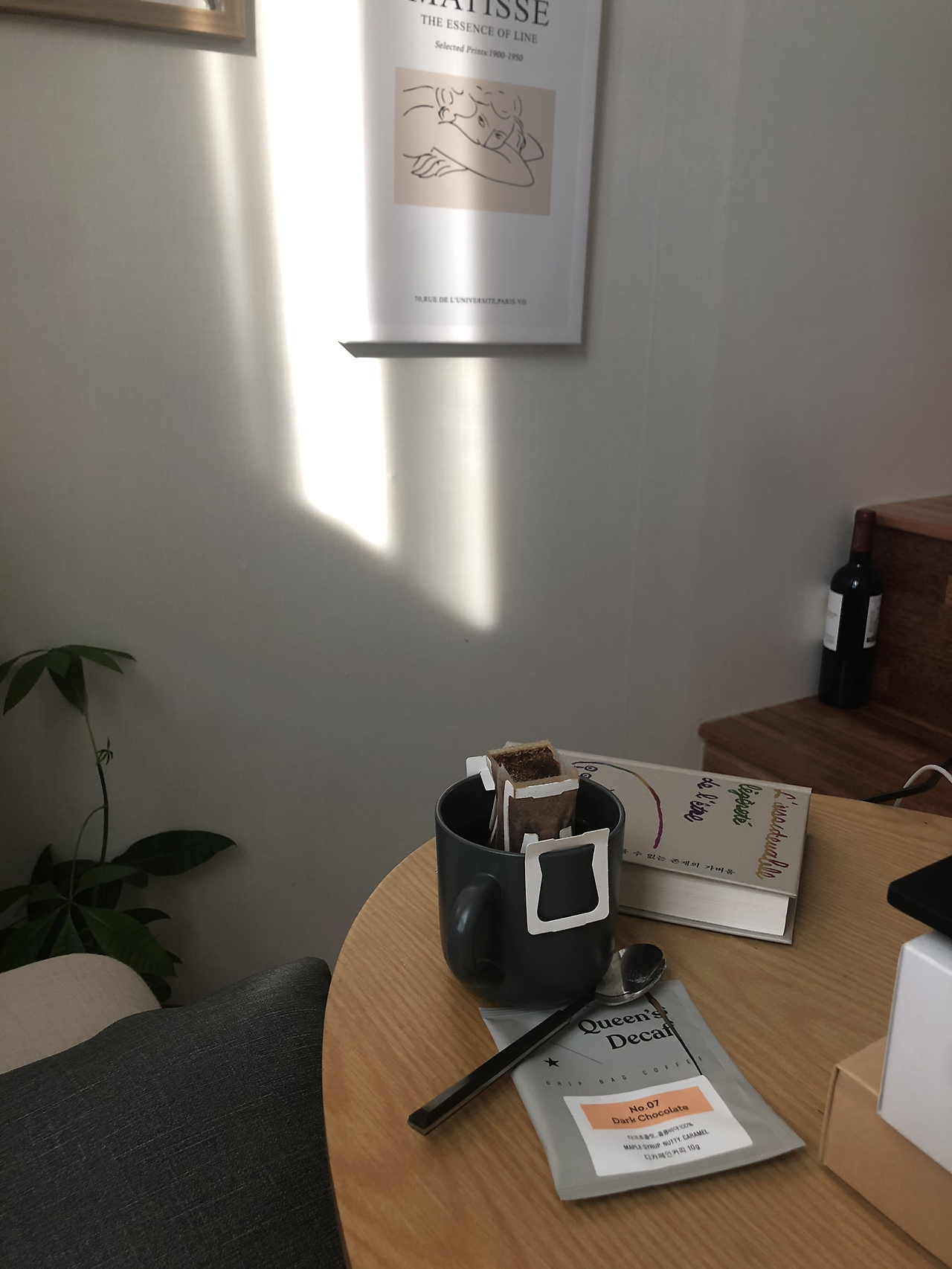 드립백 형식으로 된 커피라 품이 많이 들었다. 아무리 욕심을 내어 많이 내리고 싶어도, 일정 양을 넘어버리면 넘쳐흐르고 만다. 성격이 급한 지라 따라둔 물이 채 내려지기도 전에 물을 부어 커피를 망친 적이 한두 번이 아니었는데, 이번에는 그냥 그 느림을 즐겨보기로 했다. 느리지만 한 두 방울씩 떨어지는 커피를 보며, 향을 맡는 것이 나쁘지 않았다. 어떤 것은 기다려야만 얻을 수 있는데, 그 기다림의 시간에 조금만 조바심을 버리고 여유를 가지면 그 과정도 즐거울 수 있다는 것을 커피를 내리며 배웠다.