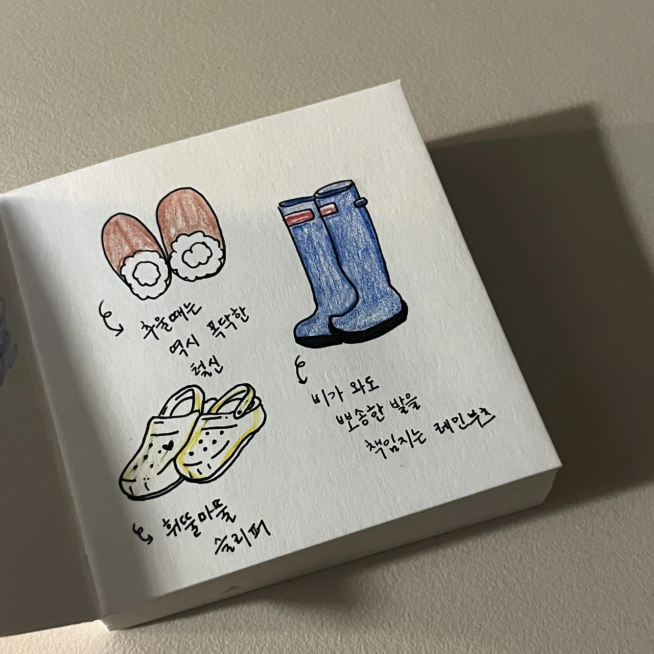 계절별로 필요한 신발들이 뒤죽박죽 나와있는 데다, 겨울임에도 레인부츠까지!